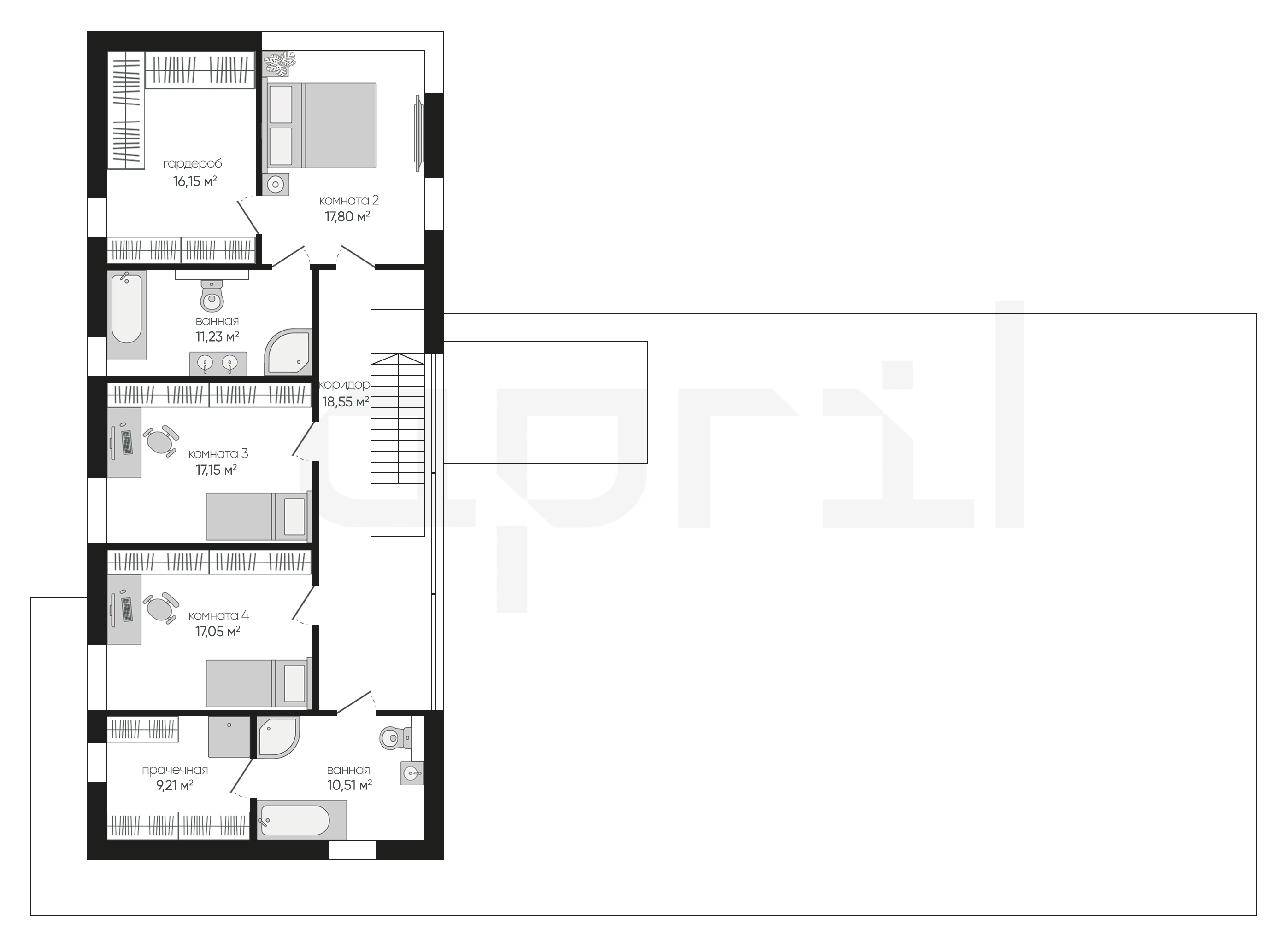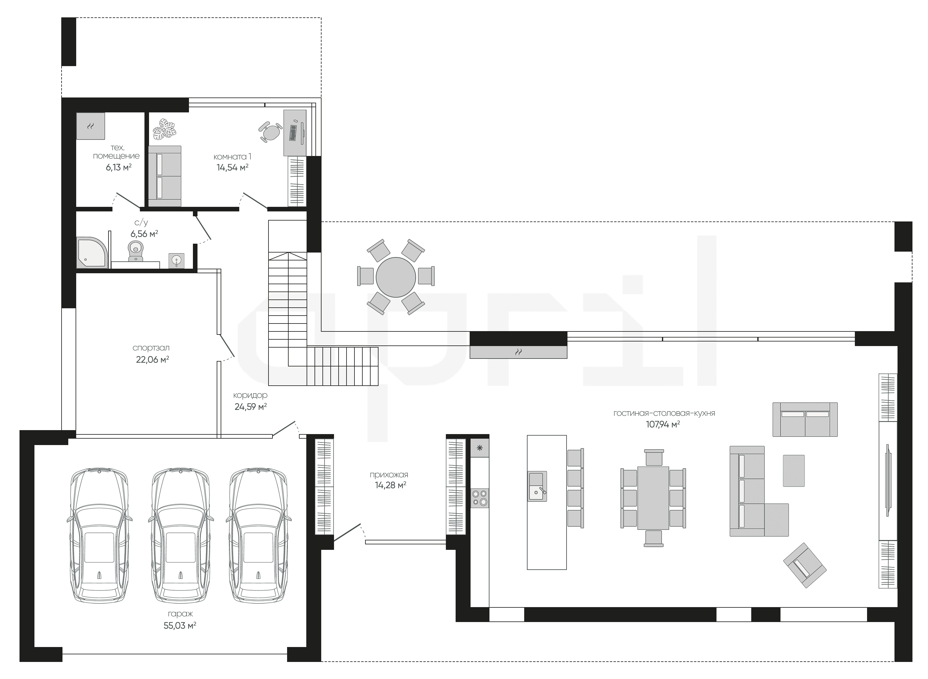 Проект представляет собой образец современного функционального жилья, где четко разделены общественная и приватная зона. Главная особенность проекта — сочетание открытого пространства первого этажа с продуманной системой хранения и отдыха на втором.