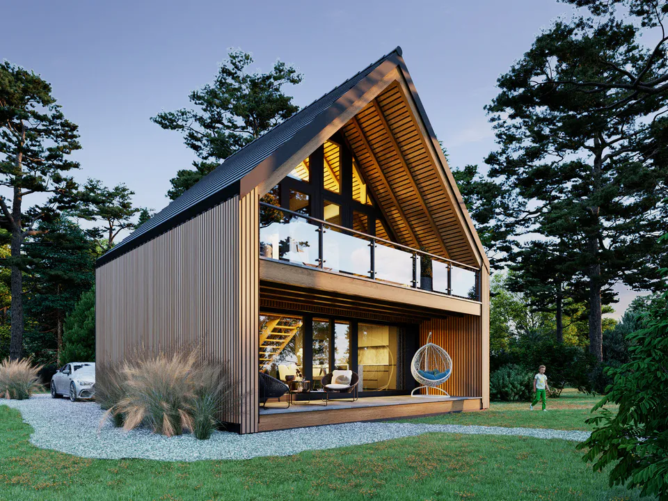 Панорамное остекление и плоская кровля не только формируют современный стиль, но и радикально меняют восприятие пространства даже небольшого дома.