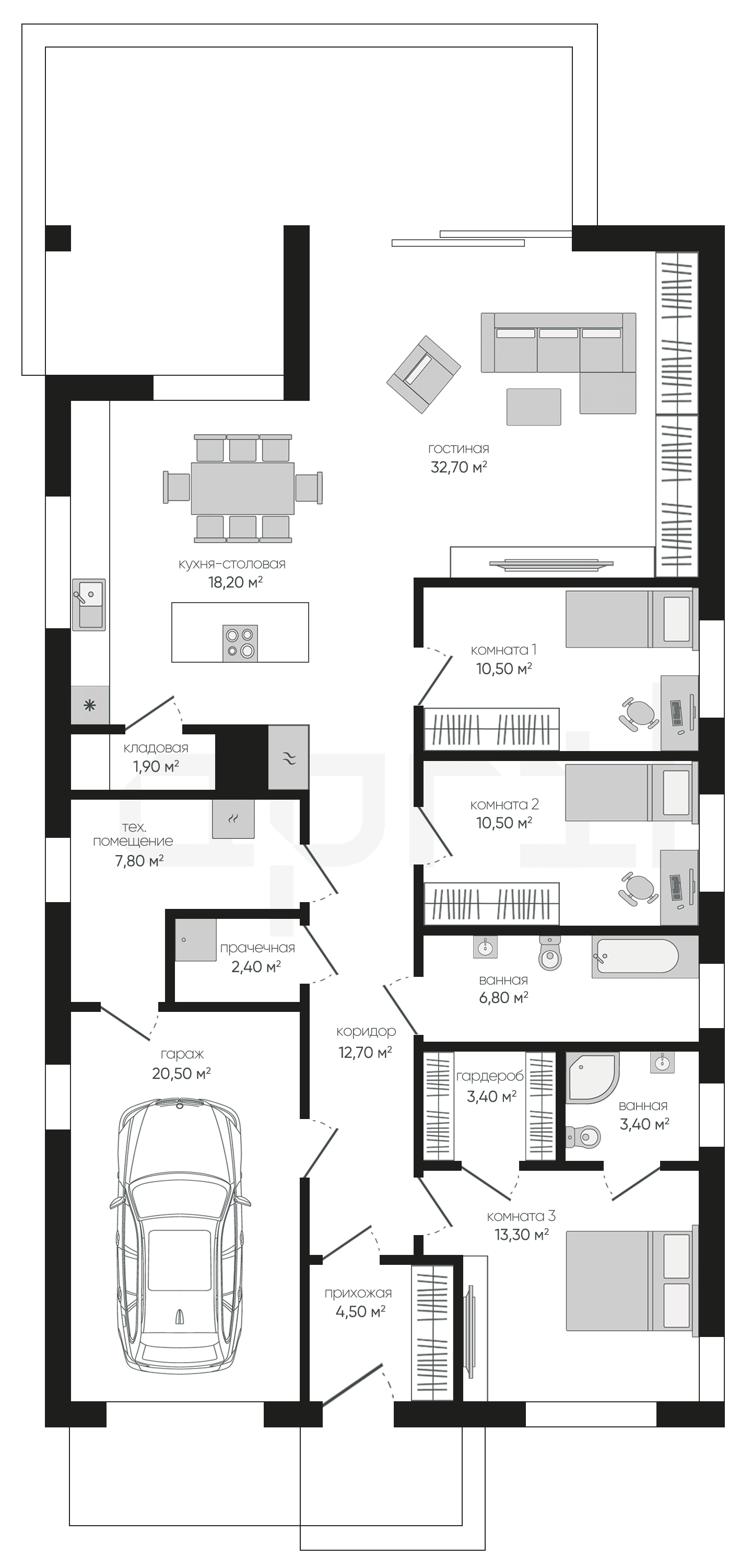 Дома 1 этаж с гаражом и террасой