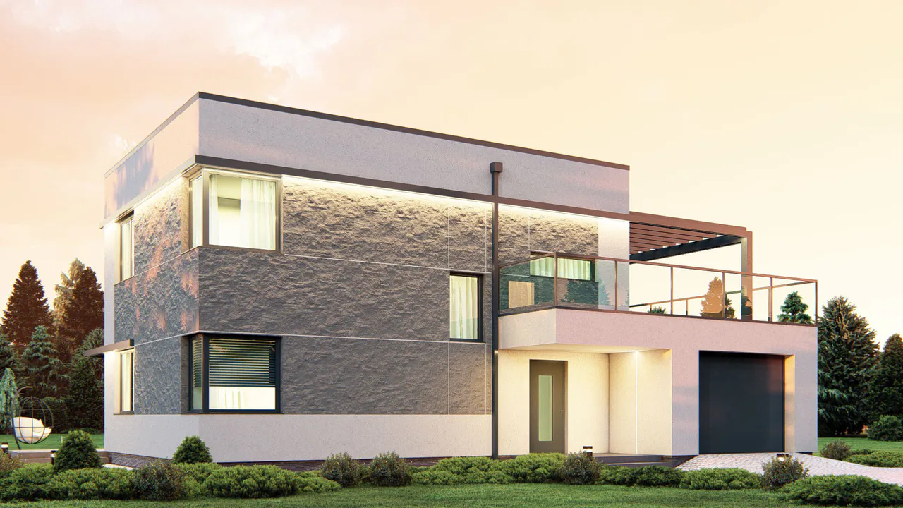 Проект современного одноэтажного дома с плоской крышей.
