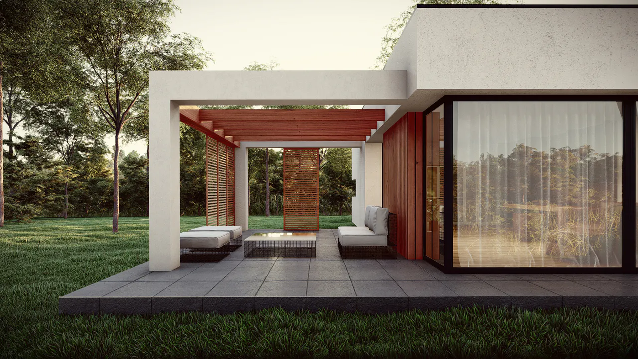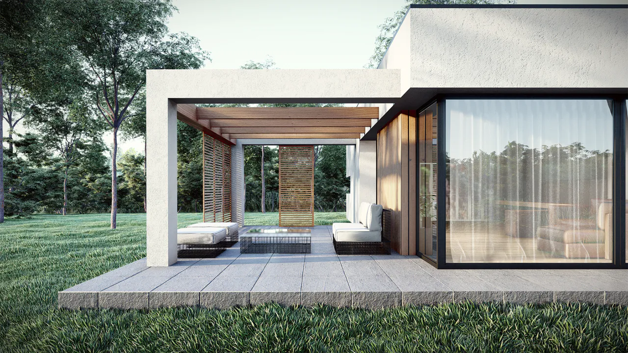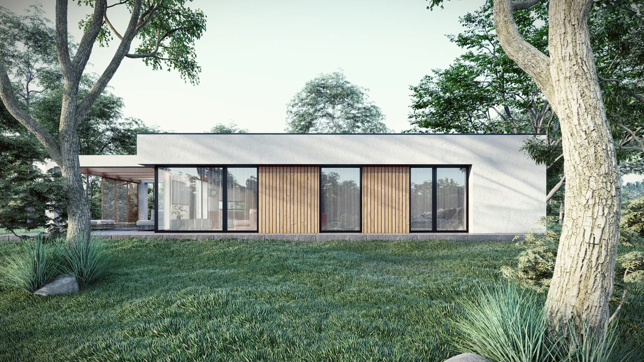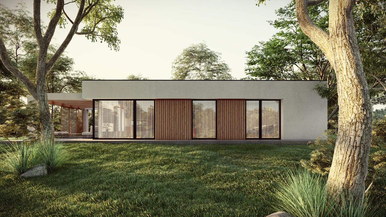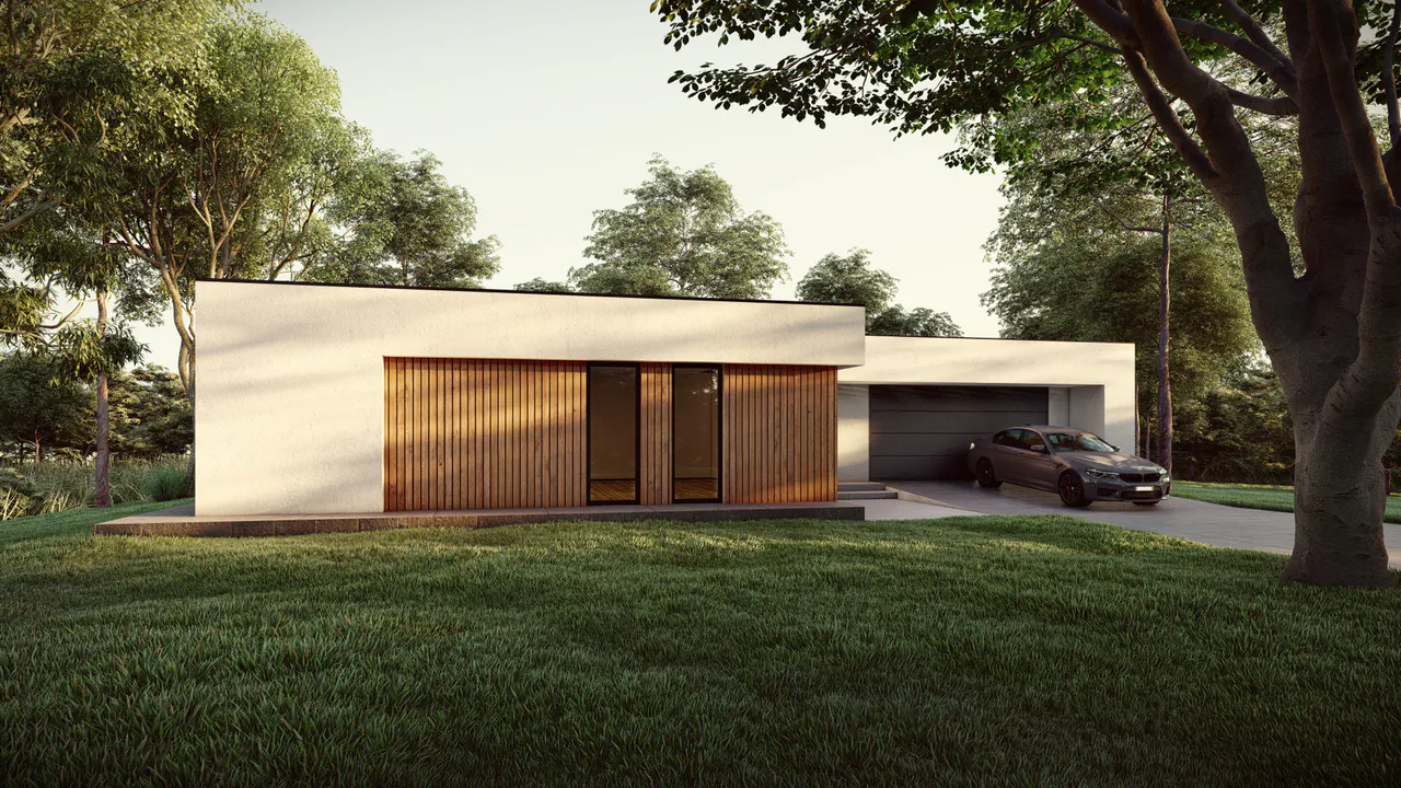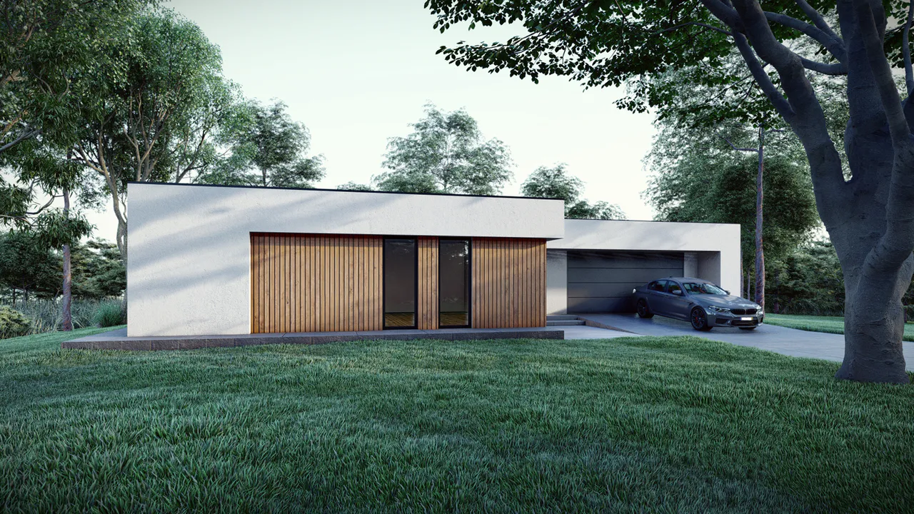 Проект современного дома с минималистичным дизайном, чистыми линиями и сбалансированными пропорциями сочетает современную эстетику с комфортом и гармонией с окружающей природой.