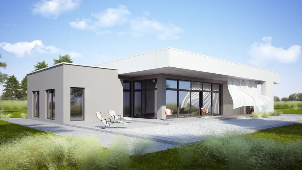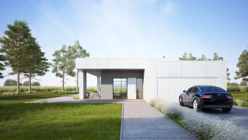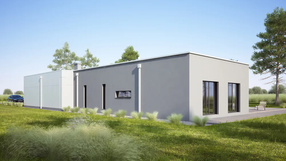 Здание отличается минималистичным и продуманным блоком с плоской крышей и лаконичным дизайном. Эти особенности определяют внешний вид здания, который, в сочетании с обширным остеклением, делает его привлекательным и выделяющимся на фоне окружающей среды.