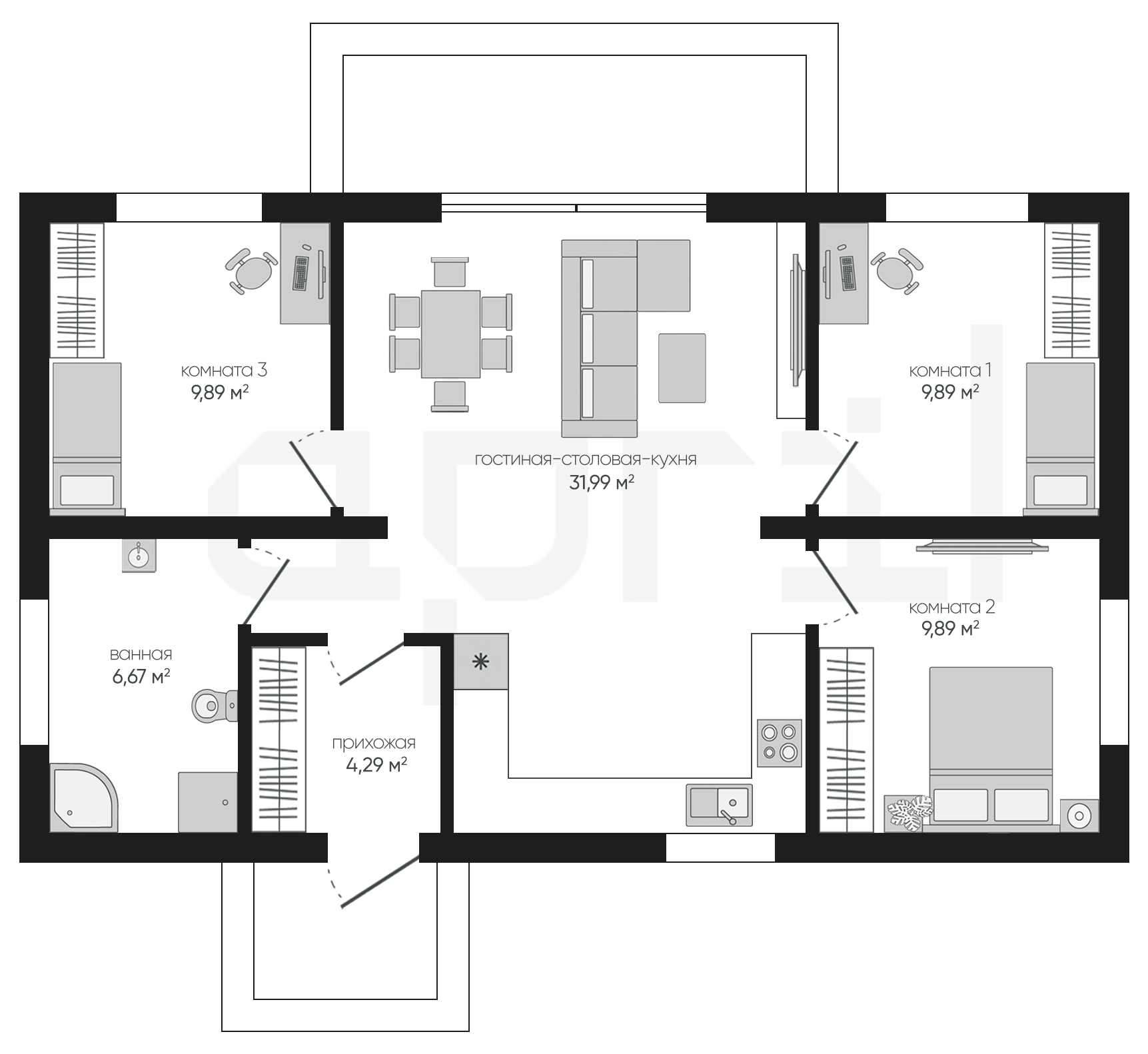 Проект предоставляет современную альтернативу трехкомнатной квартире, где у каждого есть свое пространство, а за порогом — собственный двор.