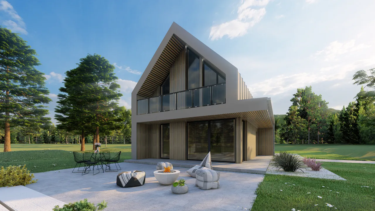 Компактные габариты позволяют вписать этот дом даже в самый нестандартный или узкий ландшафт. Это отличное решение как для уютного семейного гнездышка, так и для стильного загородного отдыха в формате современной дачи
