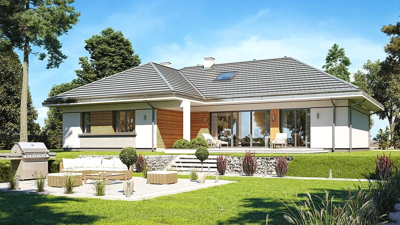 Плоская крыша – не только популярное и современное архитектурное решение, но и возможность организовать дополнительное функциональное пространство – например, террасу или зону барбекю. Для оформления эксплуатируемого пространства можно использовать широкий спектр материалов: натуральная древесина, камень, стеклянные ограждения и т.д. Последний вариант – это еще и отличный панорамный вид, которым можно наслаждаться в любое время года. Плоская крыша пришла к нам из европейских стран с теплым климатом и небольшим количеством осадков. Она имеет идеальную аэродинамику при сильном ветре. Но надо учесть, что воду или снег с нее будет удалить сложнее – примите во внимание сложные погодные условия зимнего сезона.