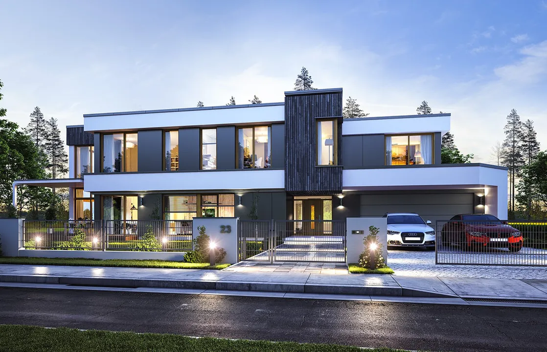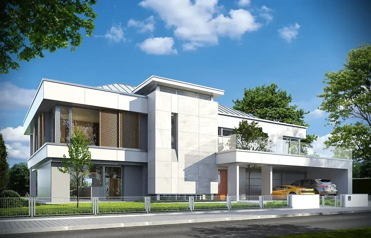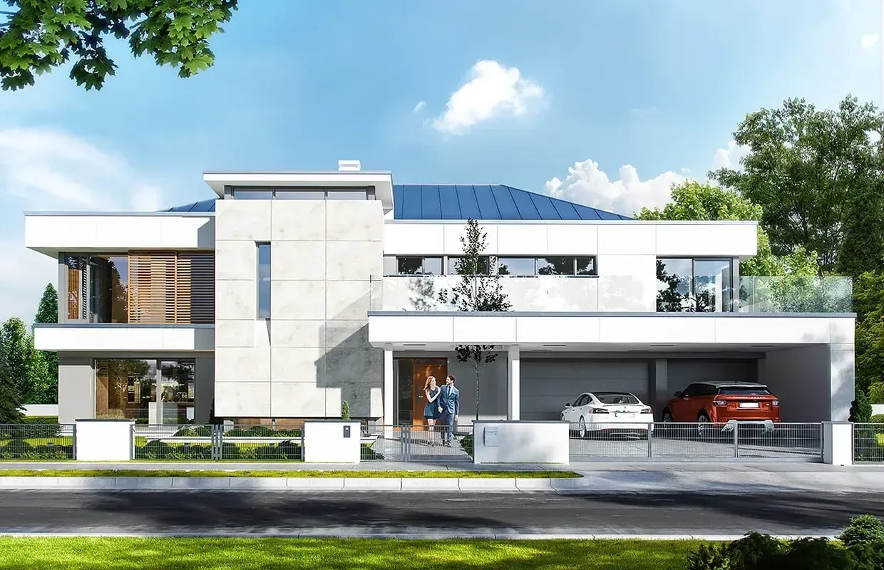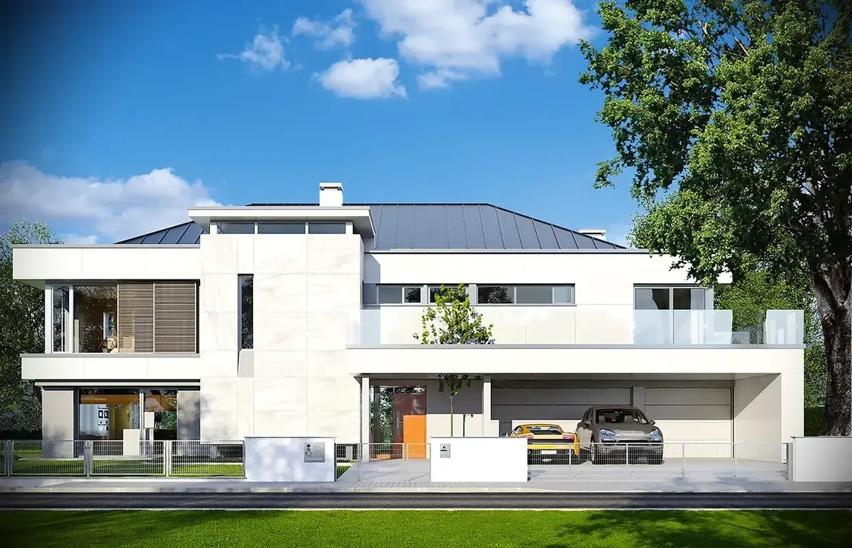 Проект двухэтажного дома в стиле хайтек— воплощение комфорта и рациональности каждой детали как во внешнем облике, так и в формировании жилого пространства.
