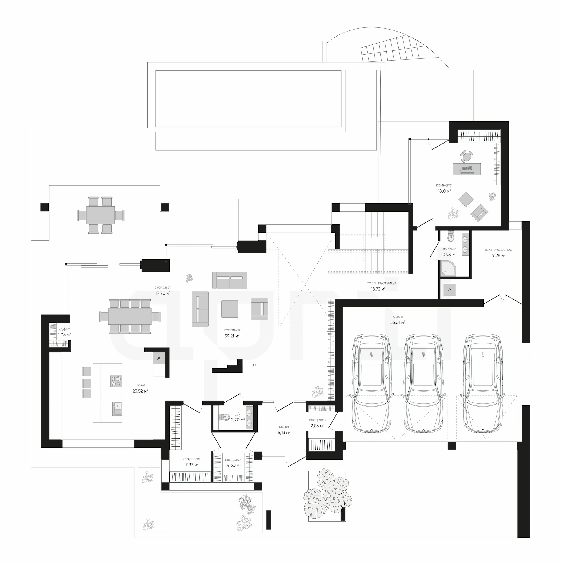 Дома 1 этаж с гаражом и террасой