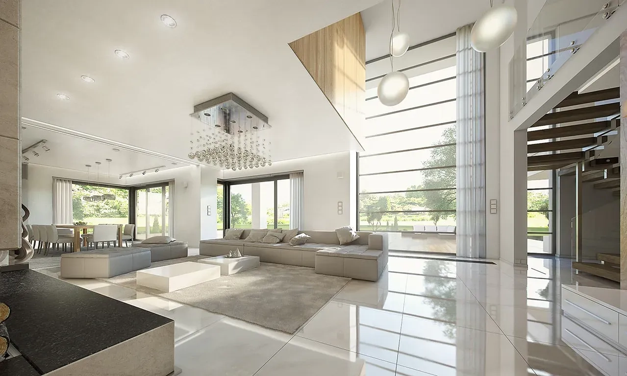 Простая геометрия строгих форм, сочетание хрупкости стекла и долговечности камня, воплощенное в просторных балконах и террасах, панорамных окнах и роскошном декоре с мраморными плитами. Эти элементы создают впечатление современности, технологичности и минимализма.
