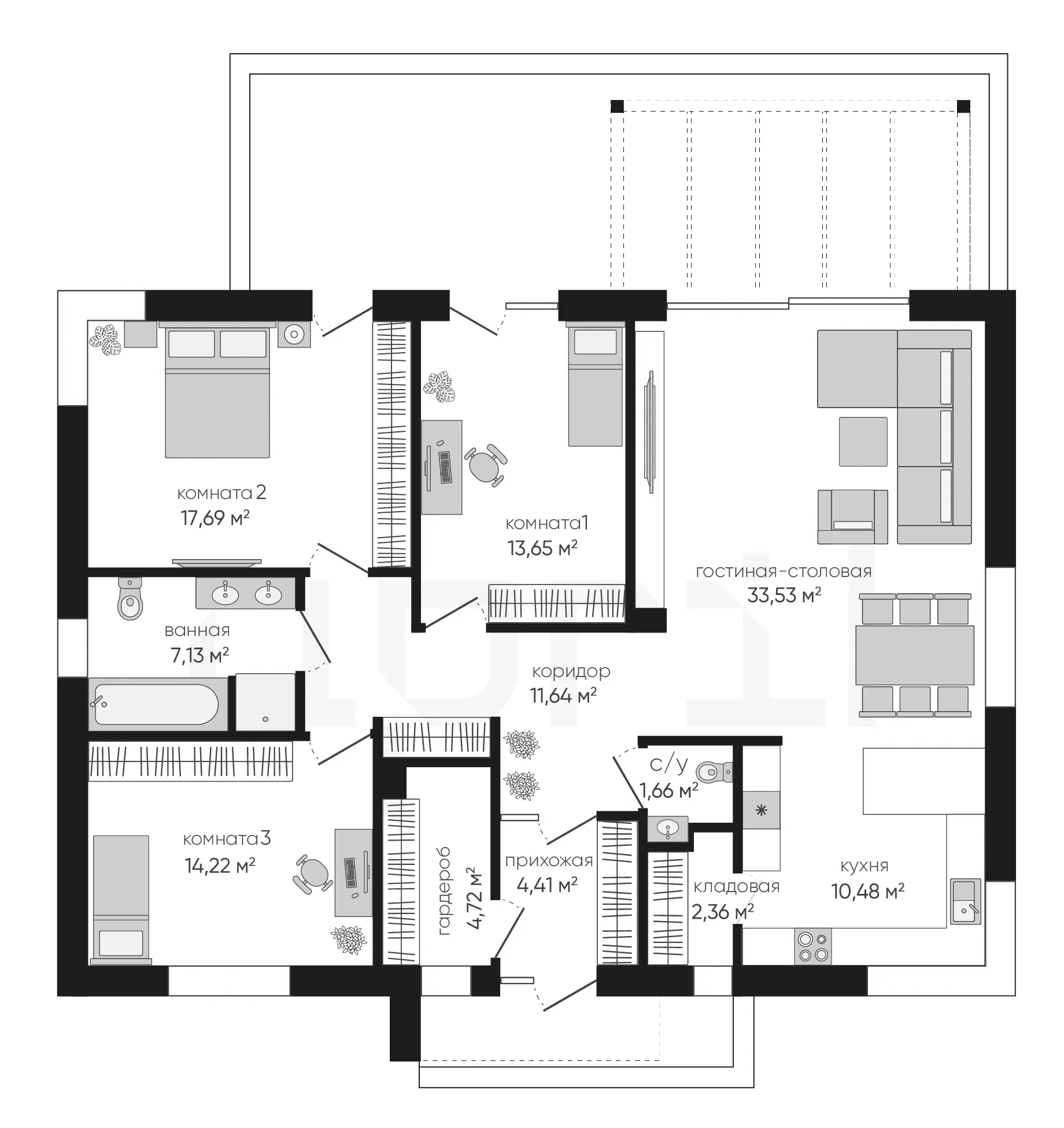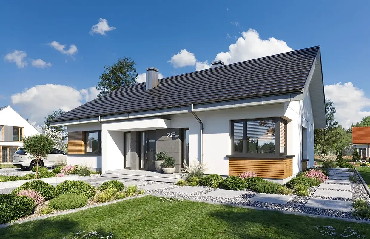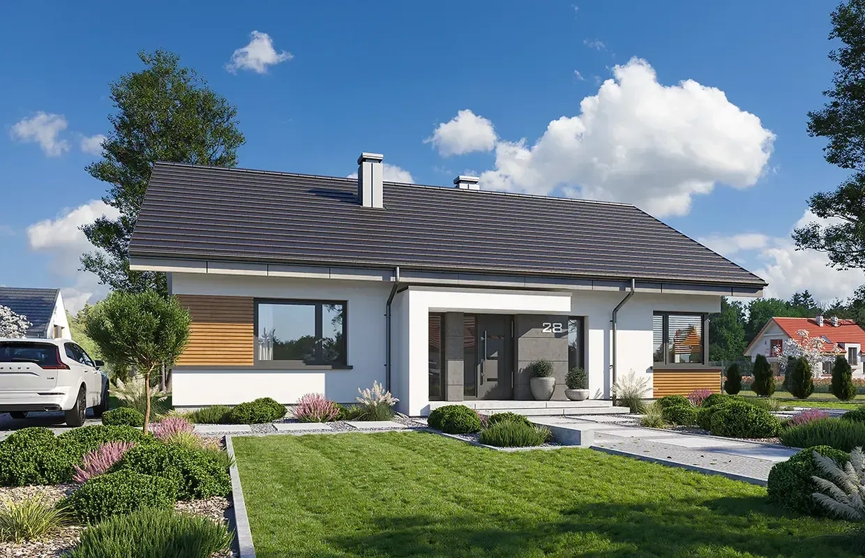 Дом подходит для средней ширины участка и семьи из 4-5 человек.