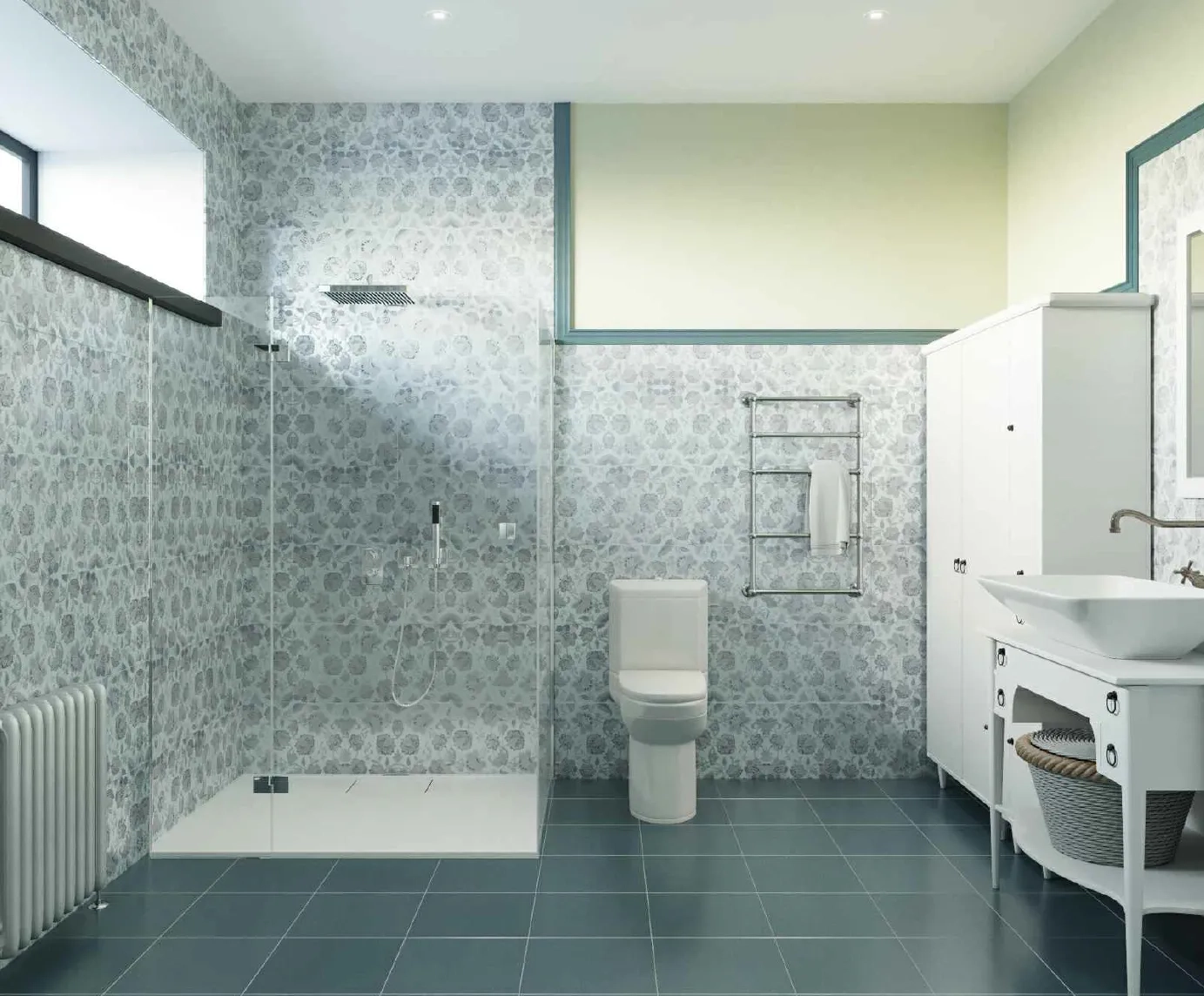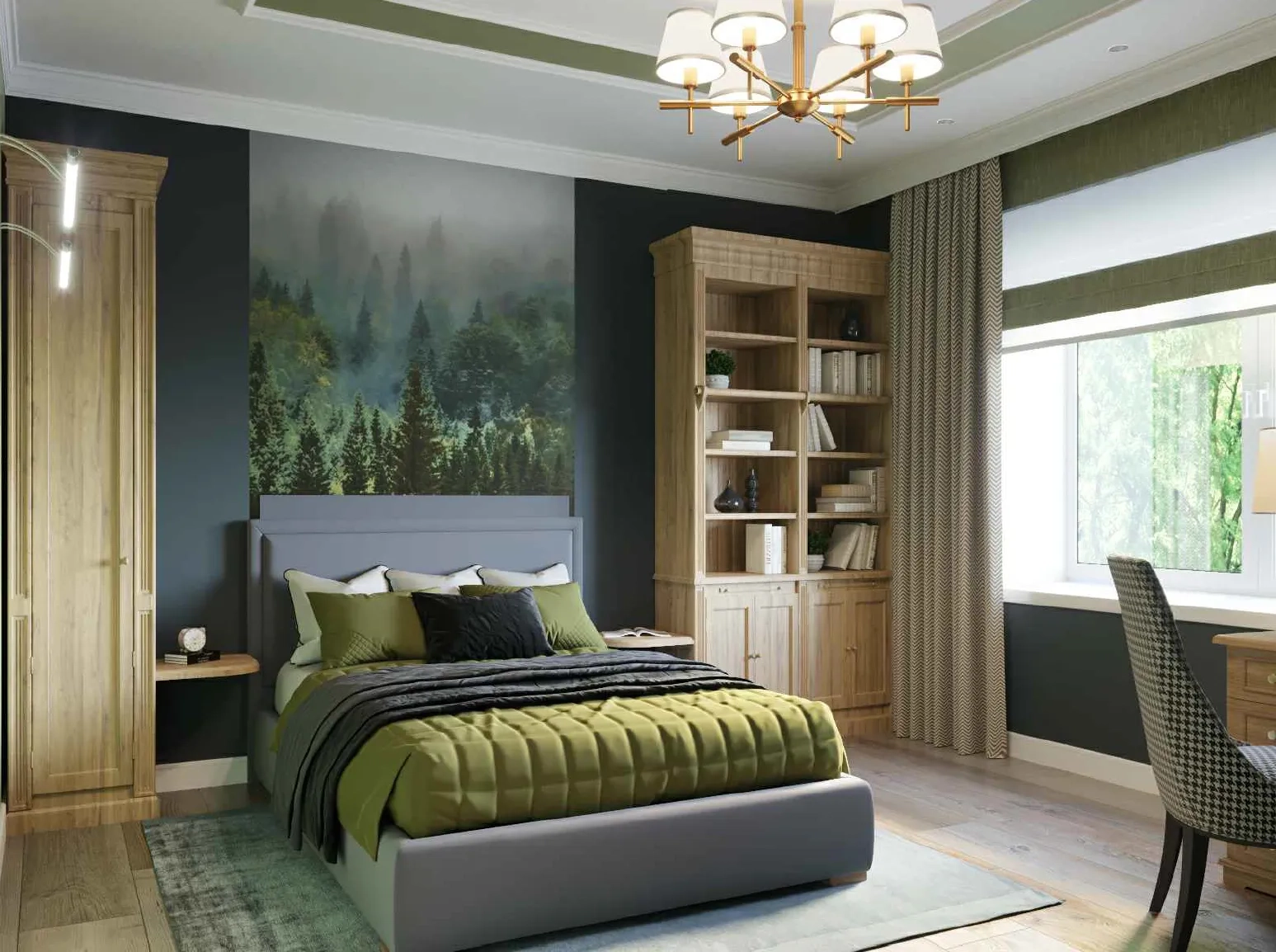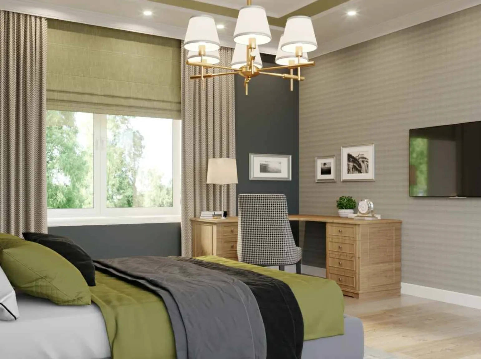 Проект трехэтажного дома выполнен в современном стиле с элементами классики. Фасад дома отделан светлым кирпичом и штукатуркой серого цвета, создавая стильное и гармоничное сочетание. Крыша имеет многоскатную форму и покрыта плоской серой черепицей. Окна прямоугольные и арочные с белыми рамами, придающими дому дополнительный шарм и утонченность.