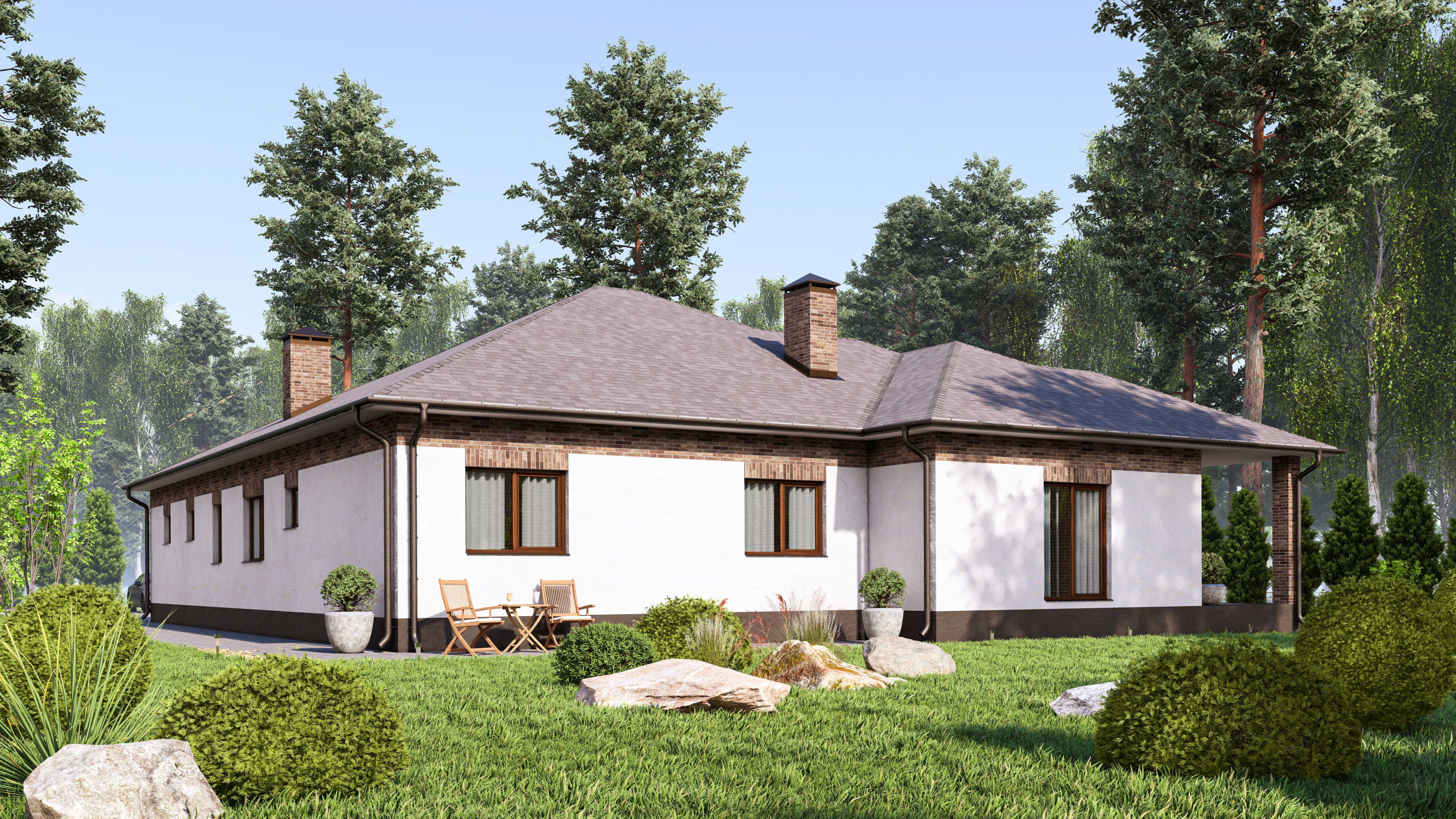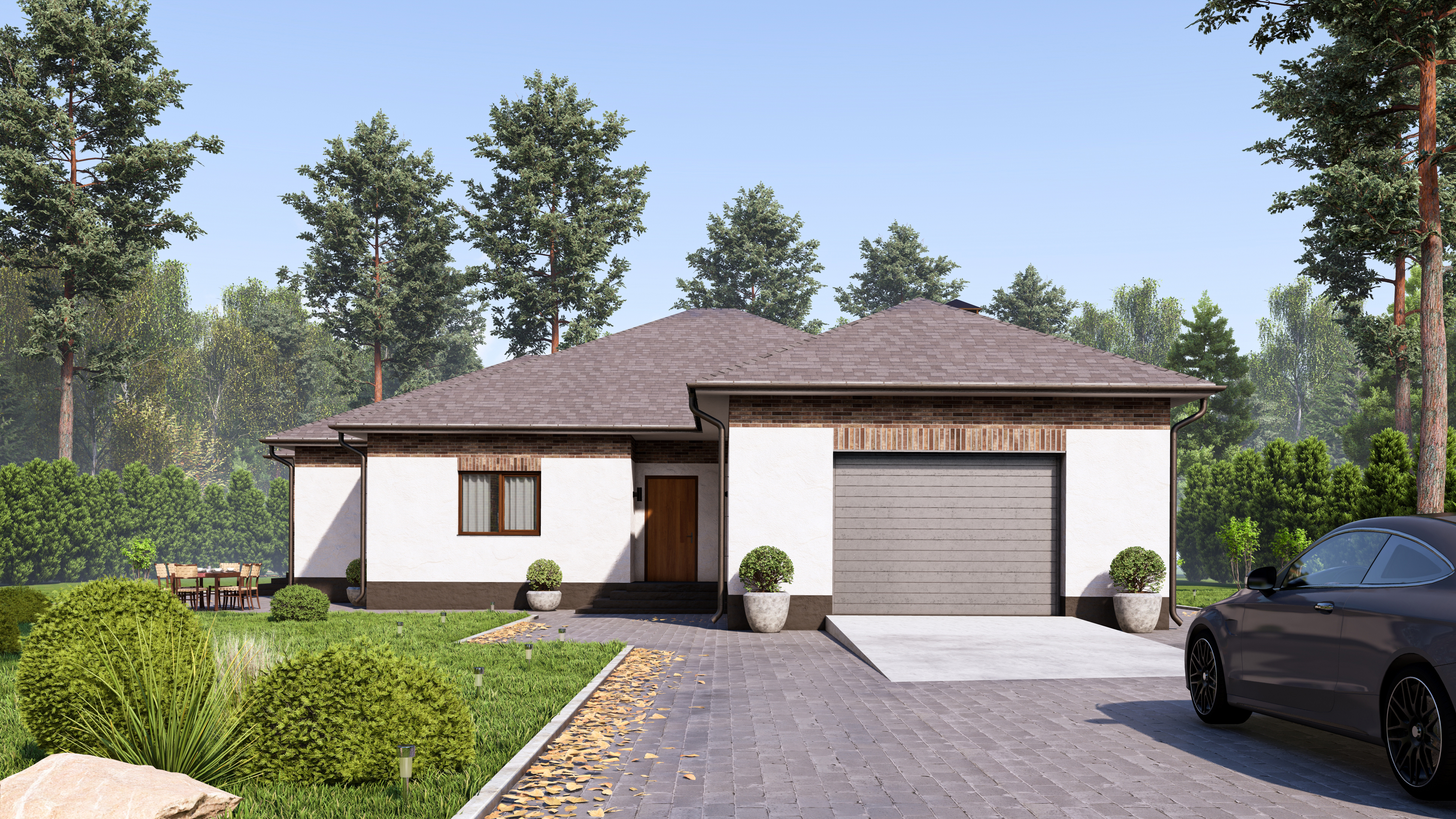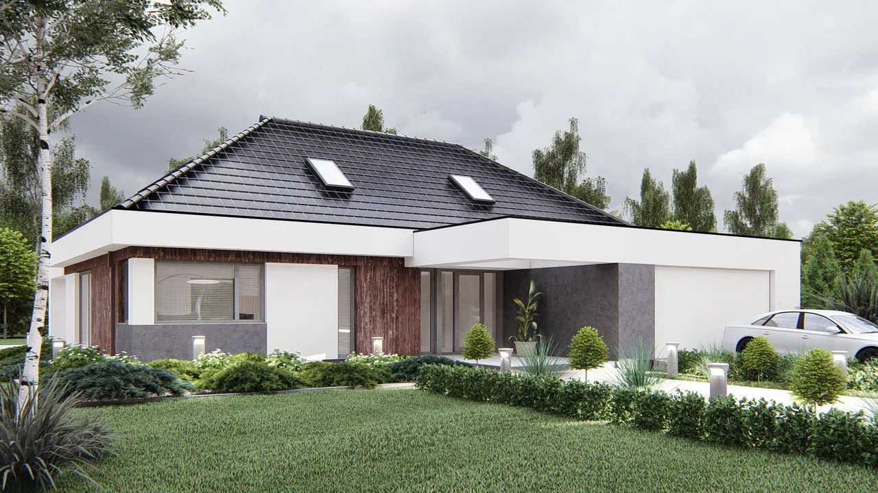 Проект одноэтажного современного дома с гаражом.