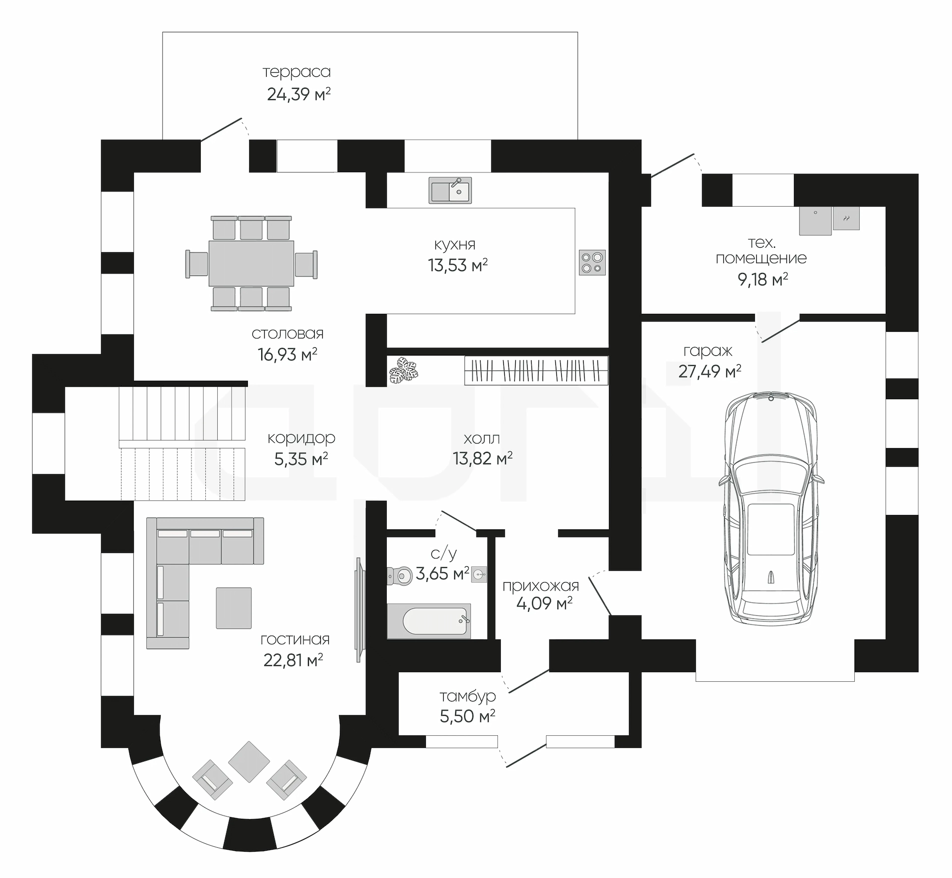 Дома 1 этаж с гаражом и террасой