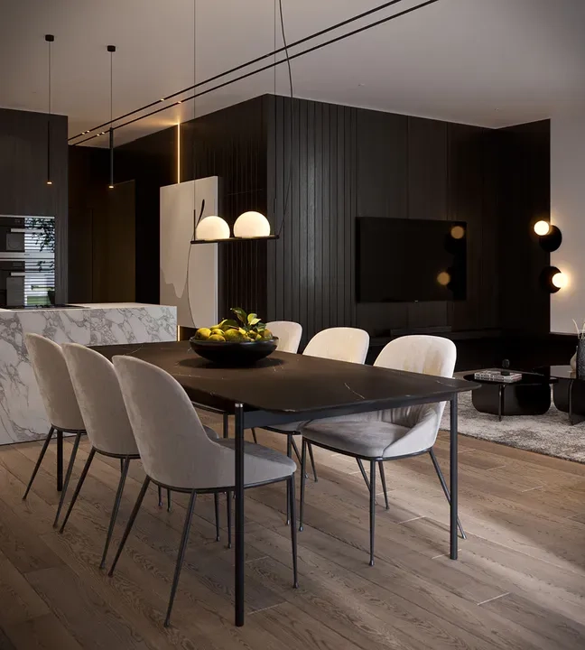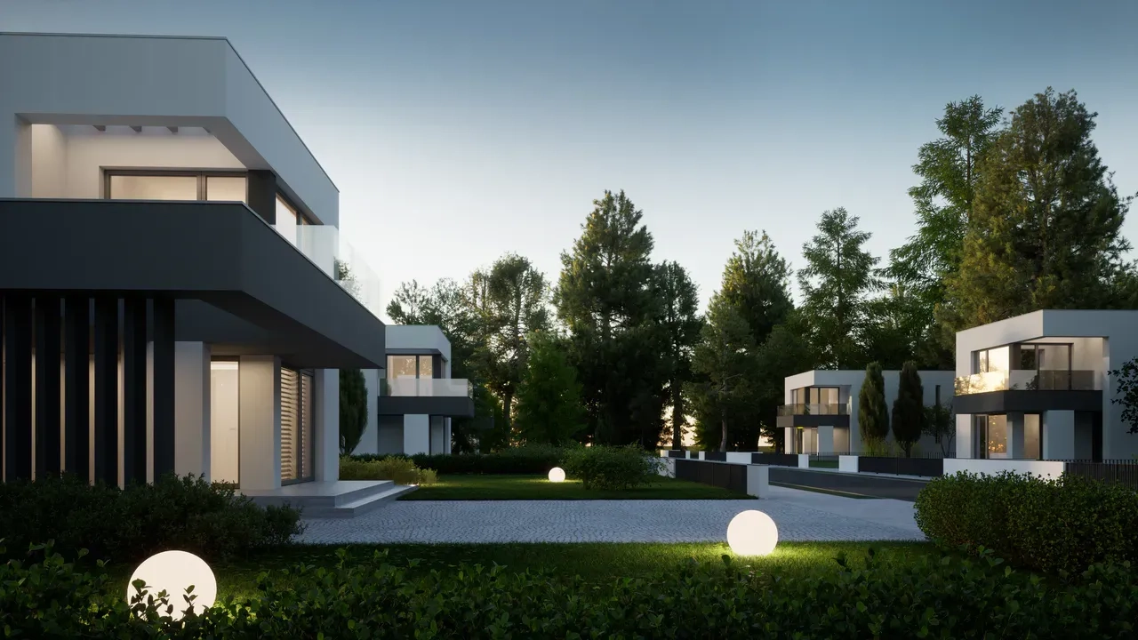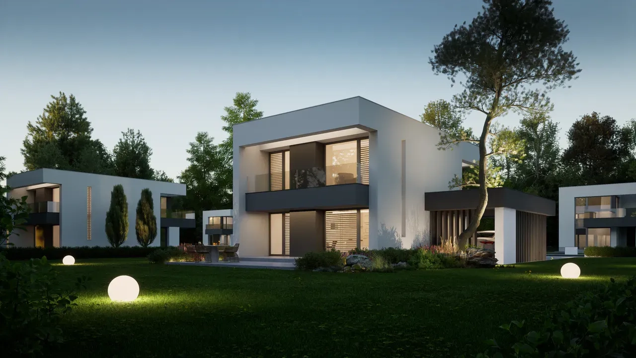 Двухэтажный современный дом отличается эстетикой, функциональностью и инновационным подходом к дизайну, делая его уникальным и привлекательным для жильцов.