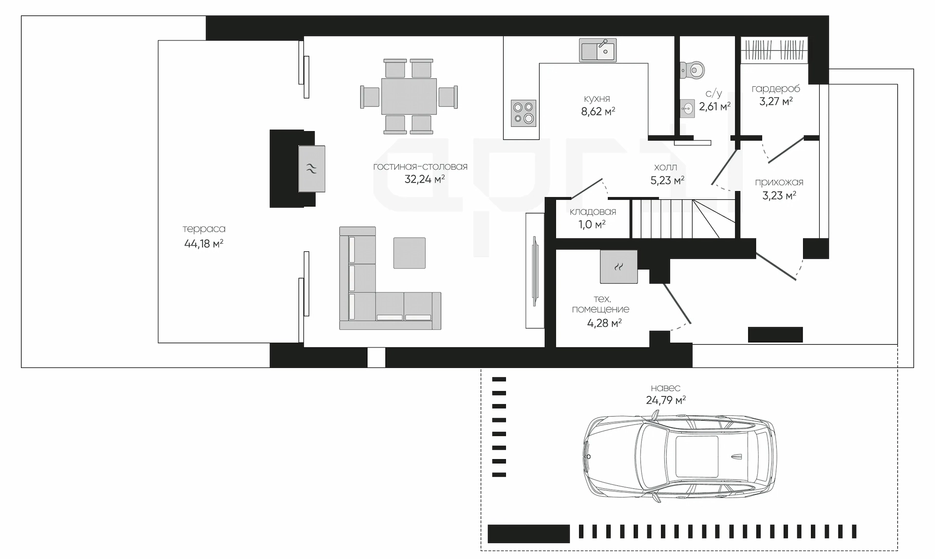 Дома 1 этаж с гаражом и террасой