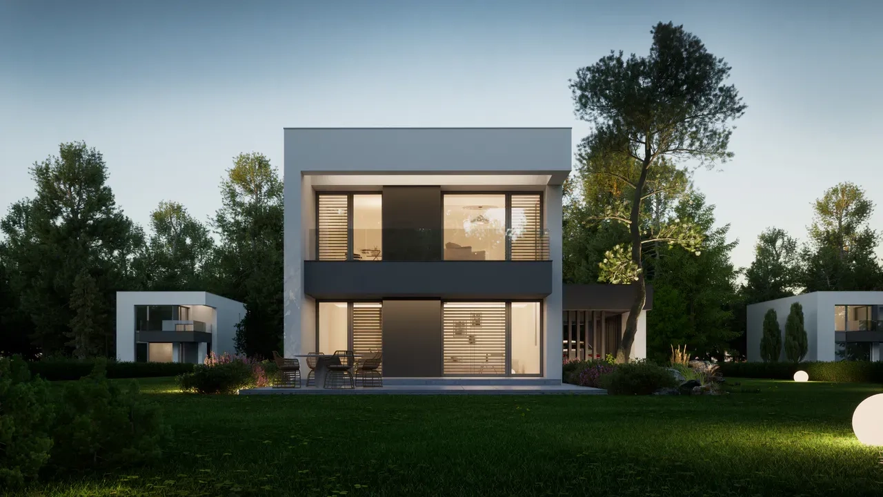 Четкие геометрические формы, отсутствие лишних деталей и утонченные пропорции делают этот дом элегантным и сдержанным.