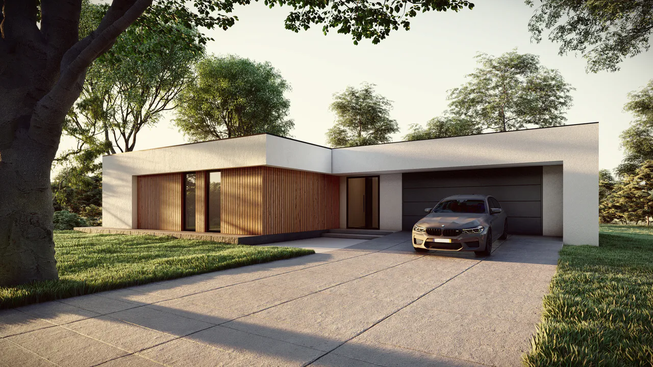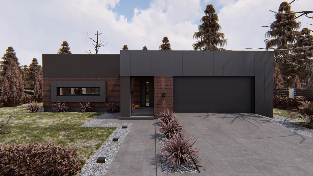 Дом сочетает в себе современный минимализм с практичными архитектурными решениями, создавая комфортное и функциональное пространство для жизни.