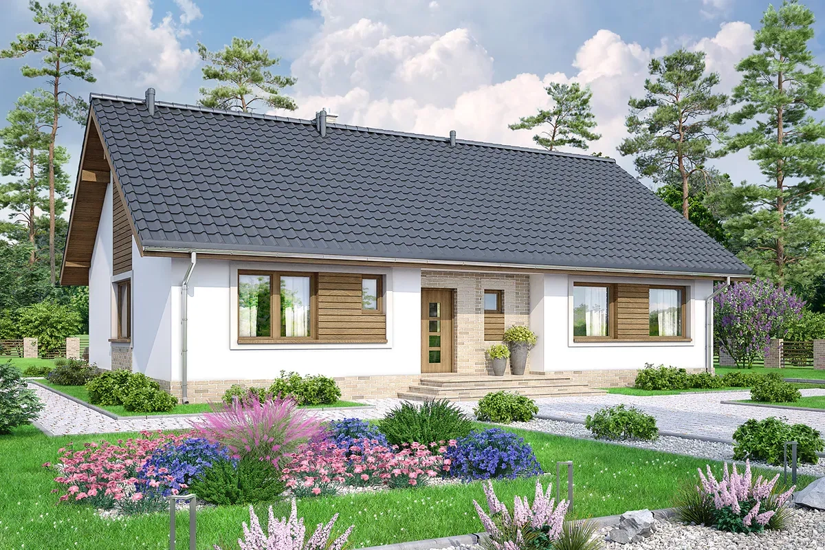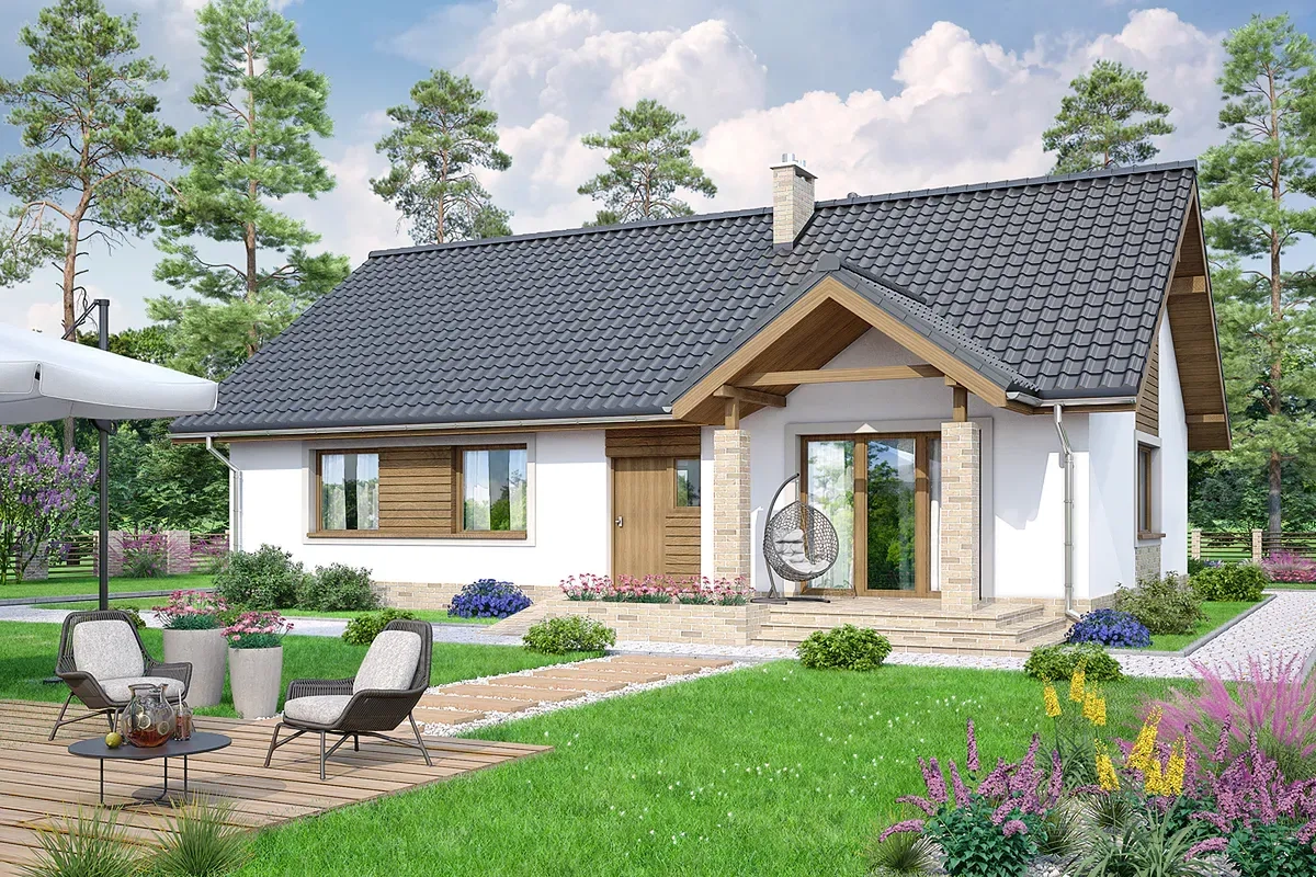Проект дома — вариант для людей с участком средней ширины.