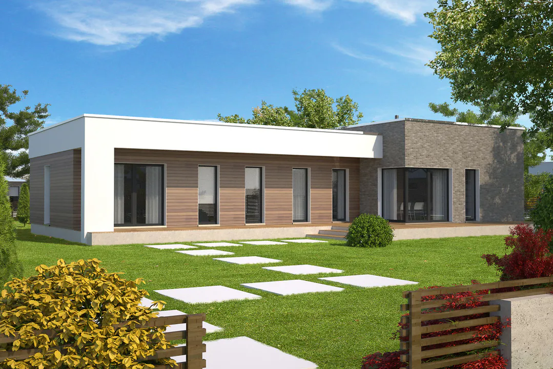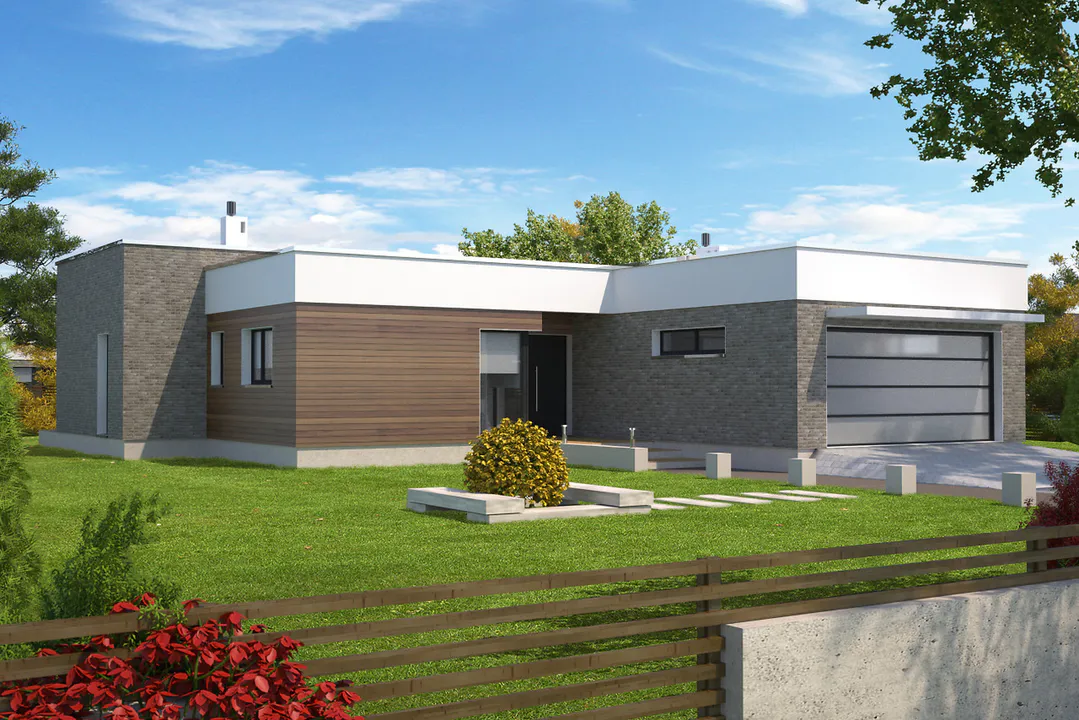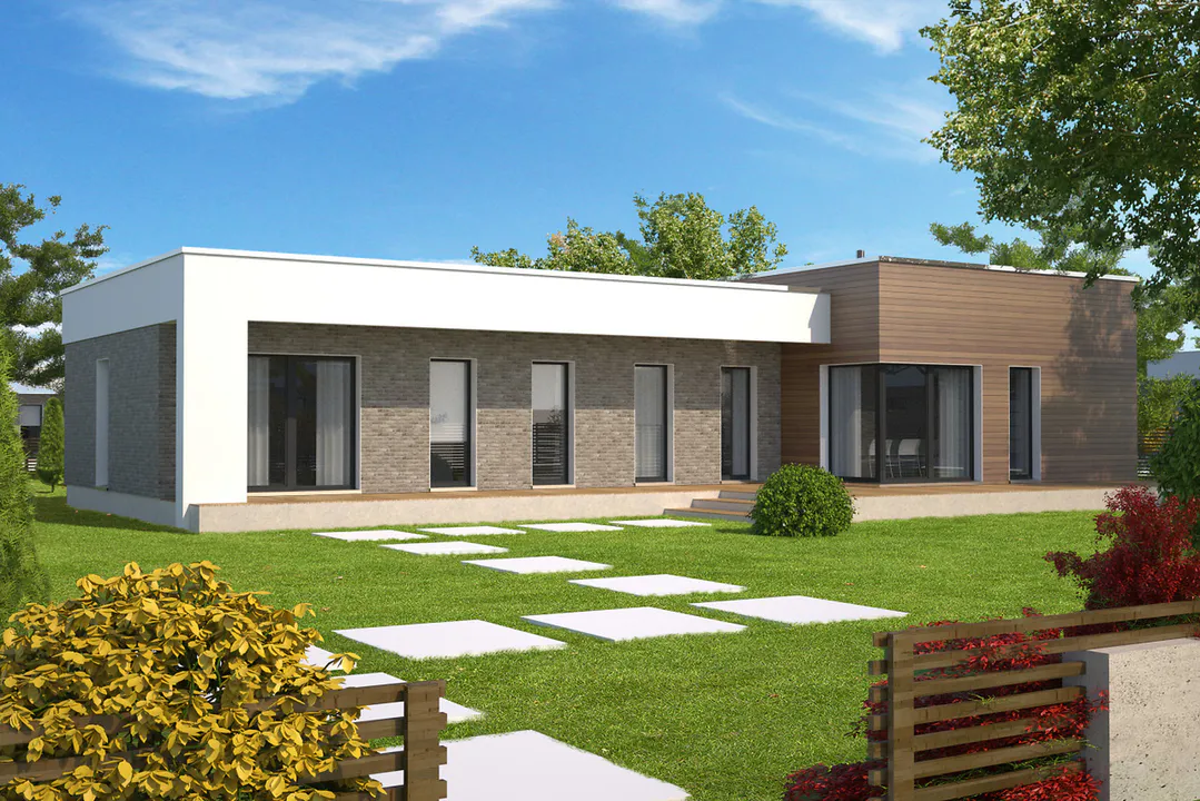 Проект современного одноэтажного дома с плоской крышей.
