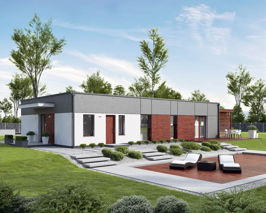Проект двухквартирного одноэтажного дома в стиле хайтек.