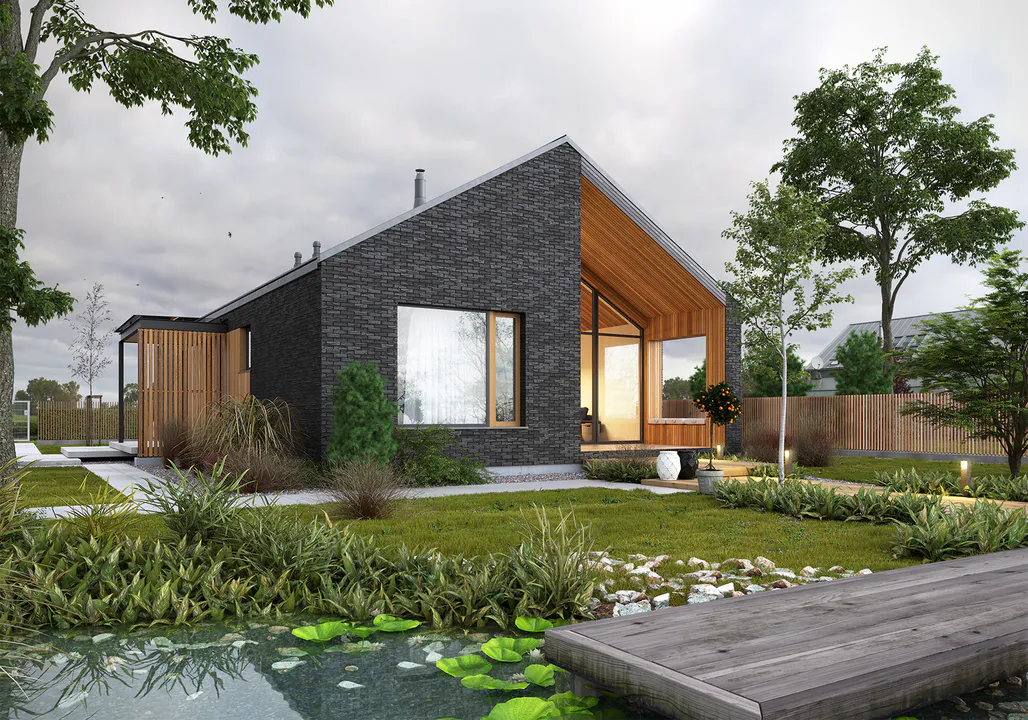 Проект небольшого одноэтажного дома в стиле Барнхаус.