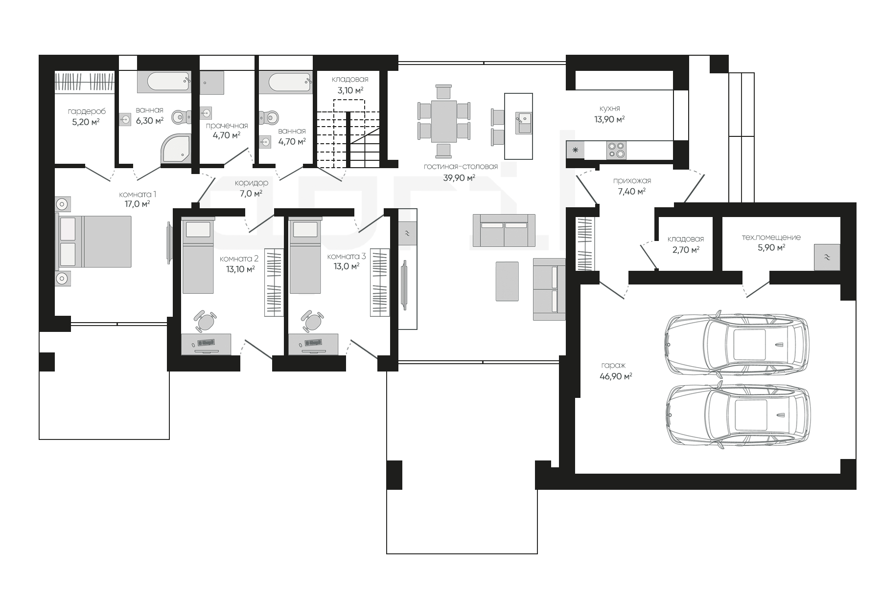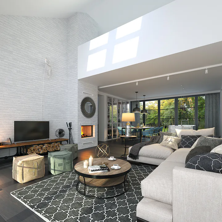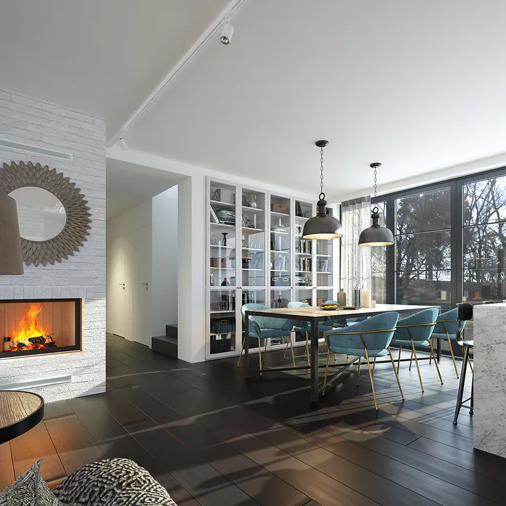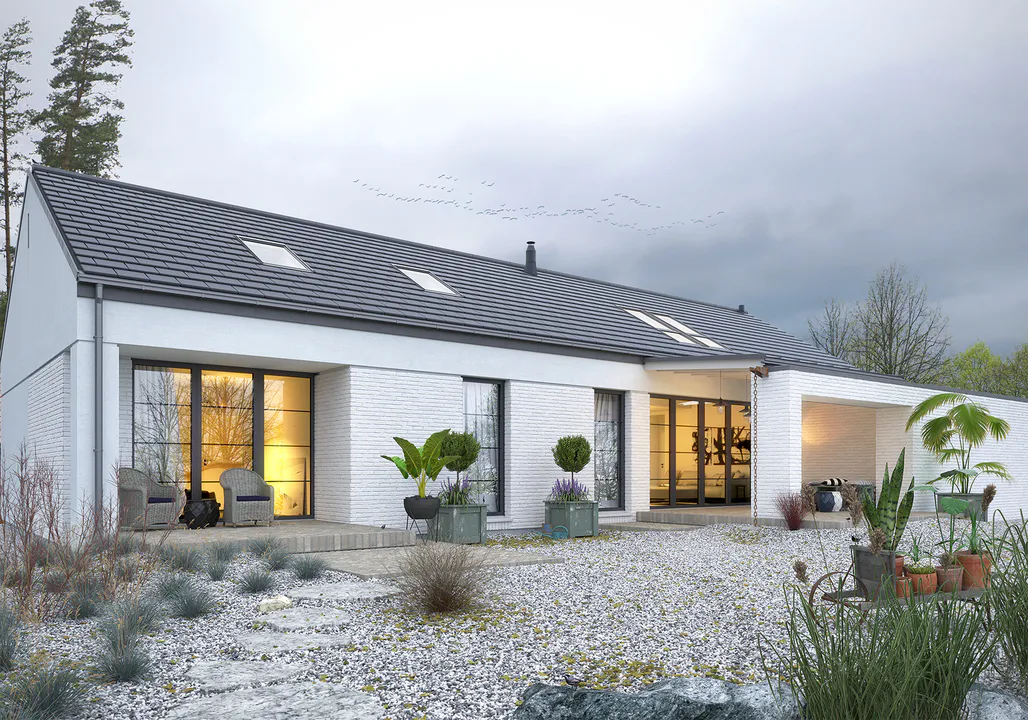 Большие окна позволяют максимально освещать внутреннее пространство и создают ощущение простора и легкости. Общий дизайн дома отличается сдержанностью, элегантностью и современным стилем.