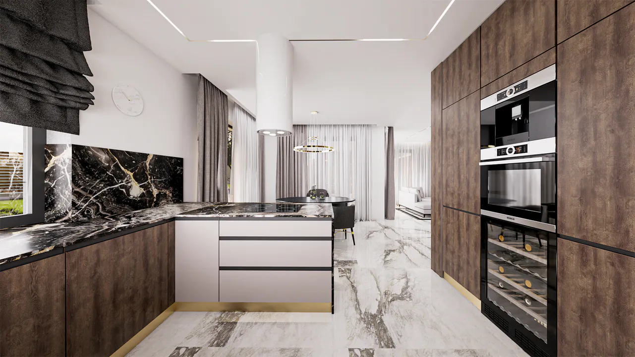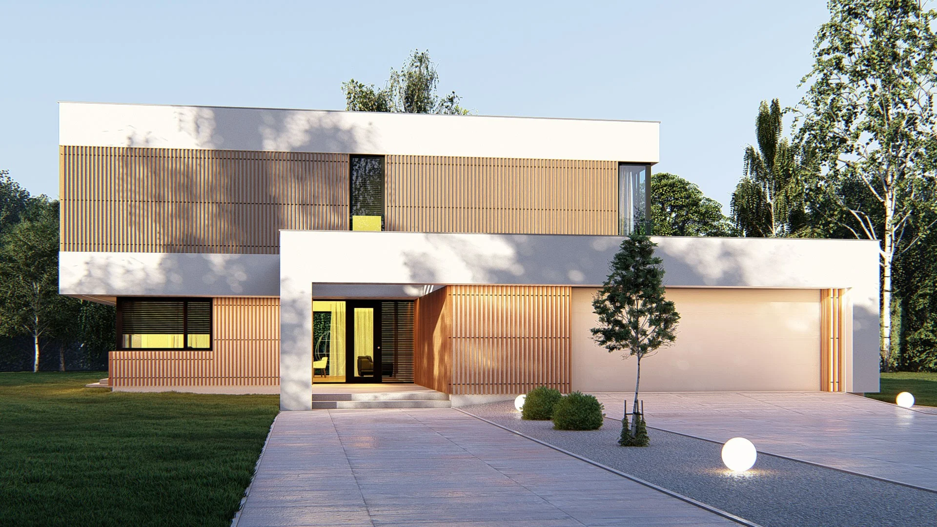 Дизайн дома говорит о современном и стильном подходе к архитектуре, создавая уютное и комфортное пространство для жизни.