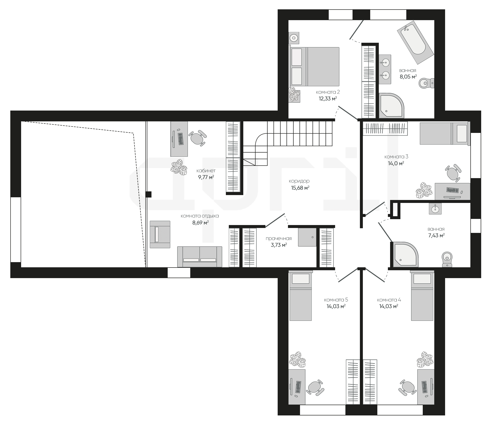 Проект демонстрирует гармоничное сочетание современного дизайна, функциональности и удобства для большой семьи, что делает его привлекательным для потенциальных владельцев.
