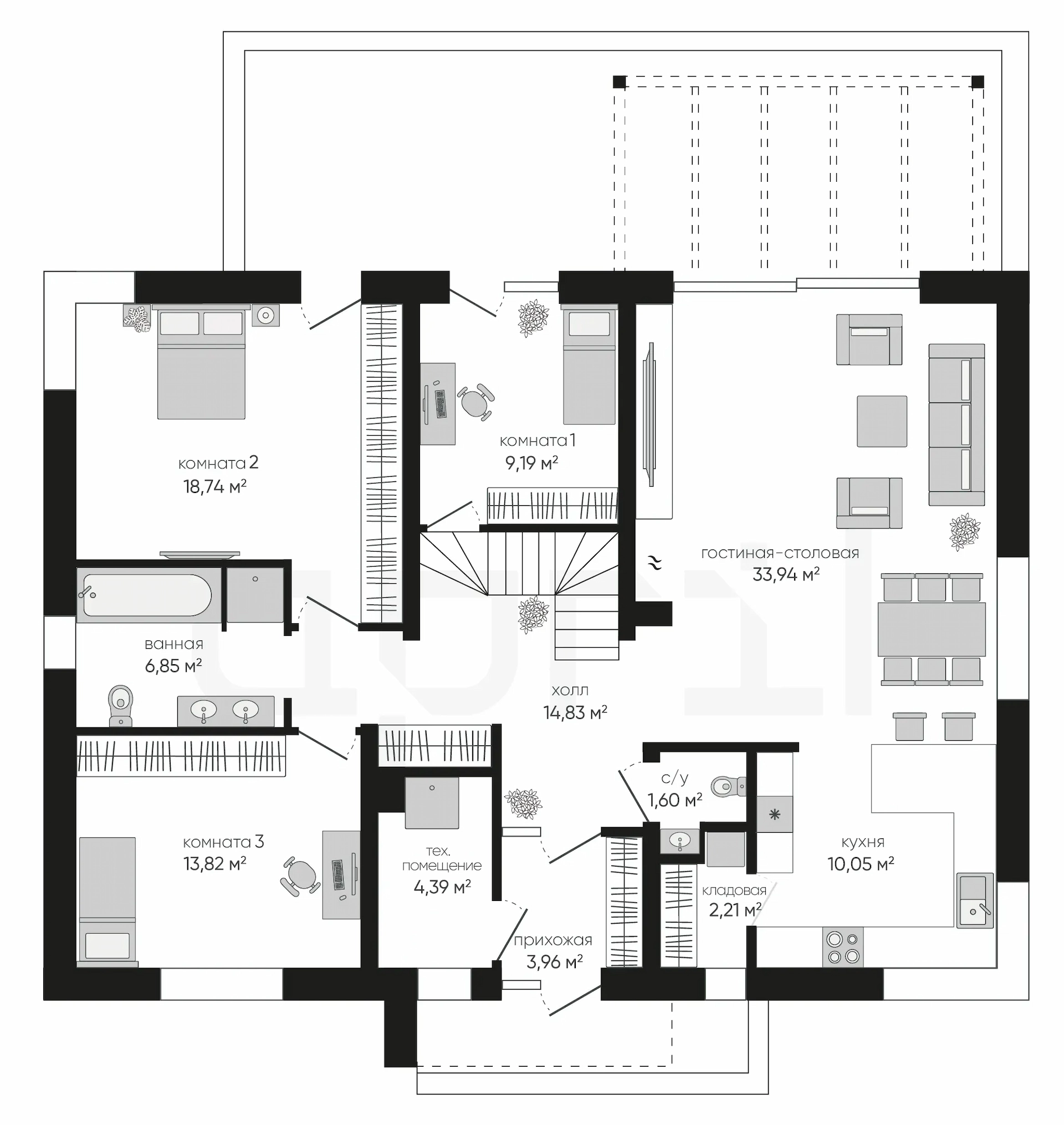 Проект рассчитан для семьи из 3-4 человек.