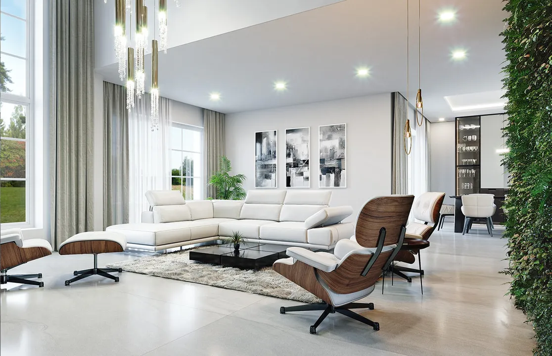 Дизайн дома находит отклик в интересных деталях, таких как эркеры для кухни и столовой, которые добавляют нотку изысканности и расширяют жилое пространство.