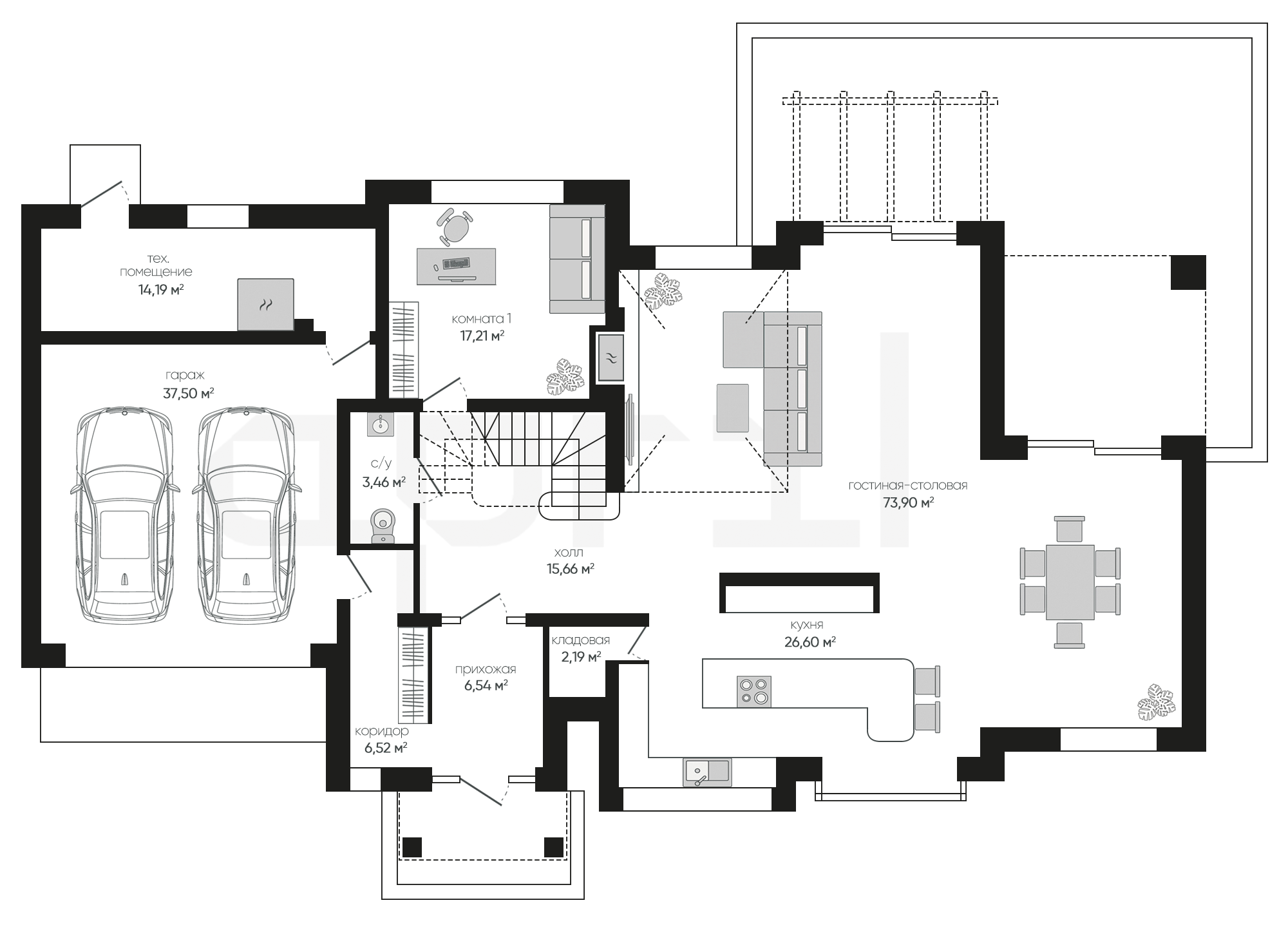 Дома 1 этаж с гаражом и террасой