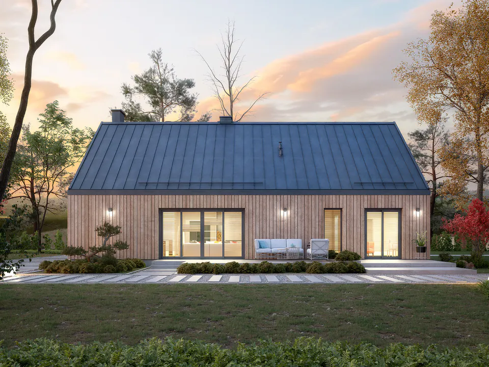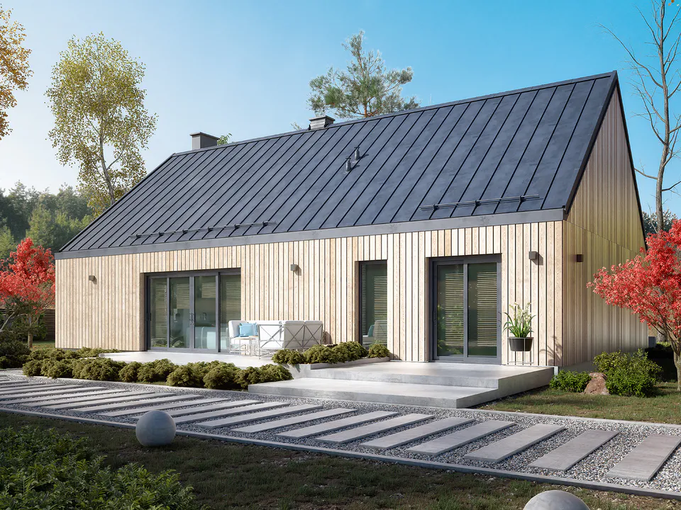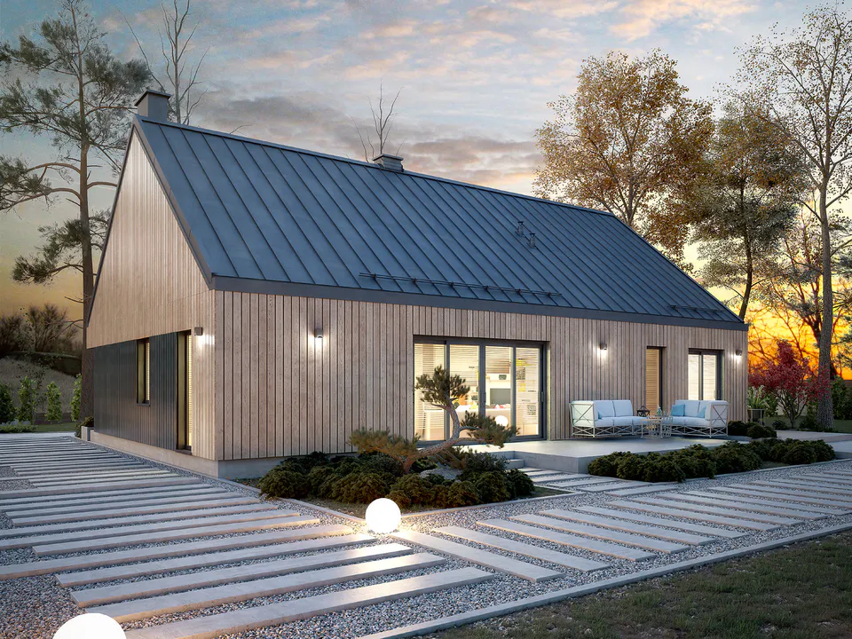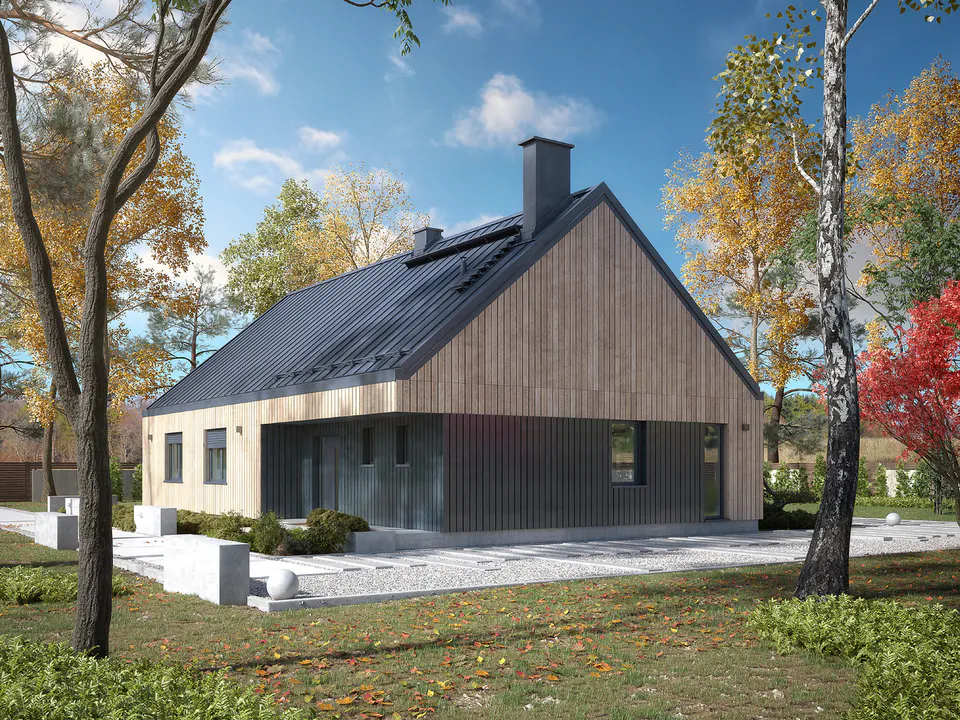 Проект одноэтажного дома без гаража в скандинавском стиле.