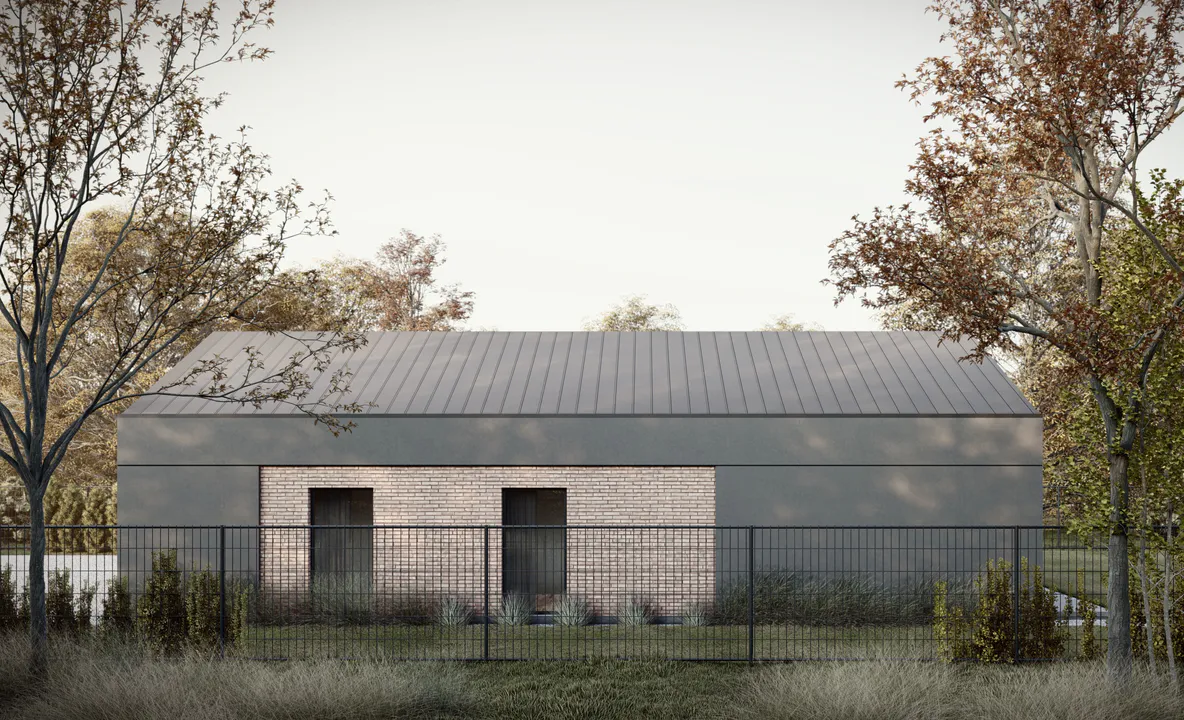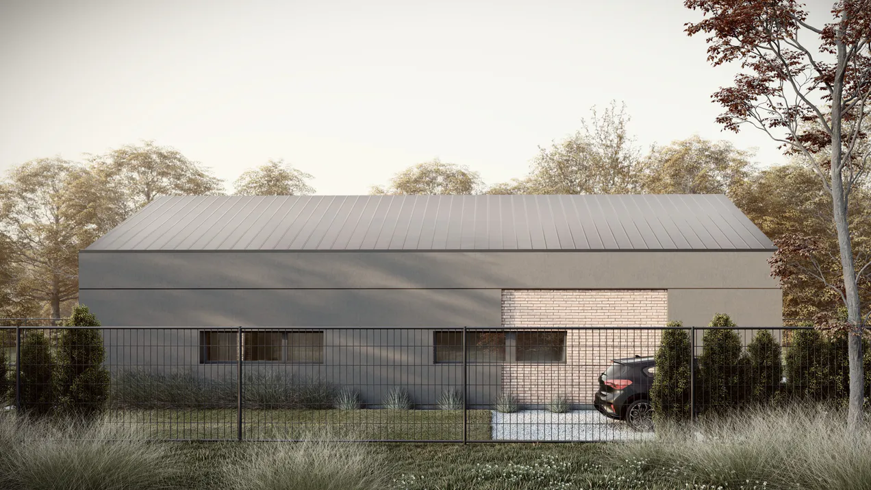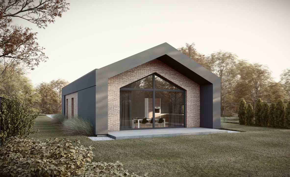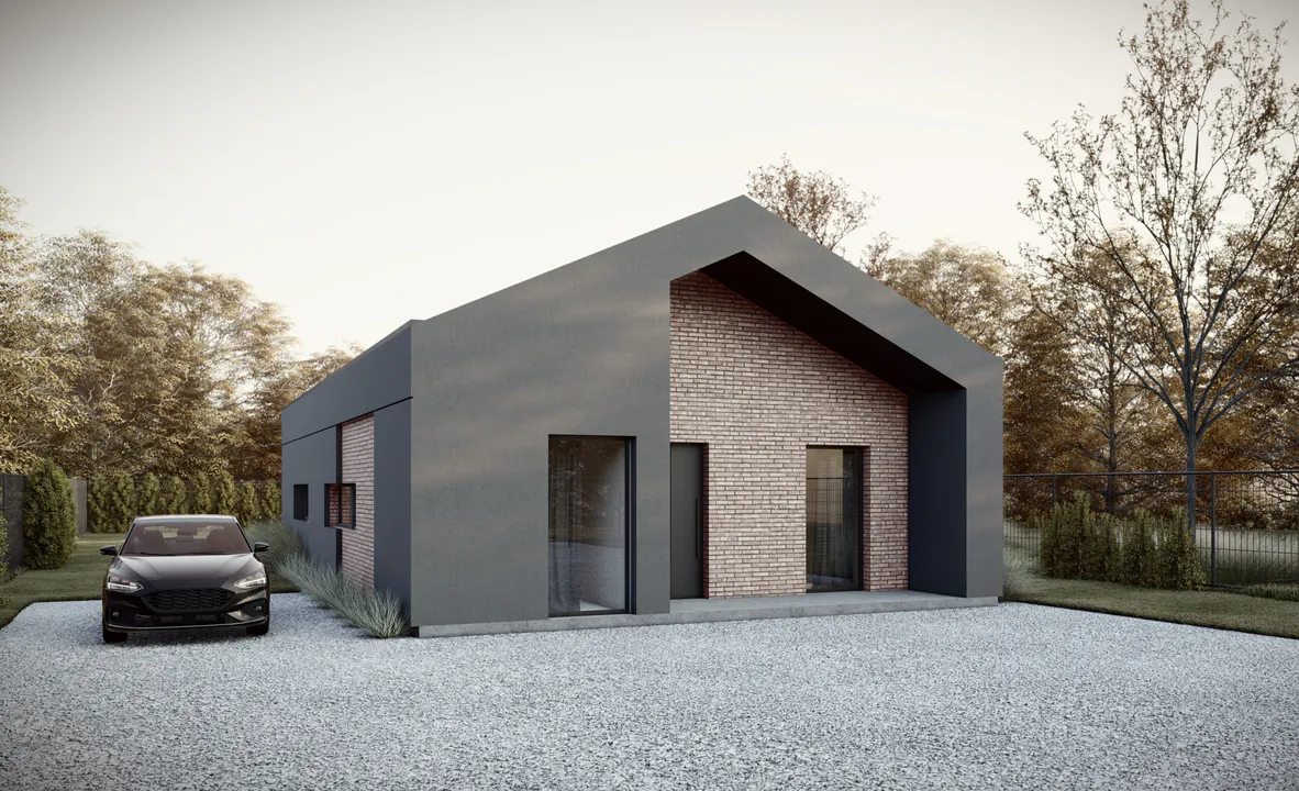 Проект характеризуется прежде всего простой прямоугольной формой с двускатной крышей. Особенностью проекта является четкое разделение дома на дневную и ночную зоны.