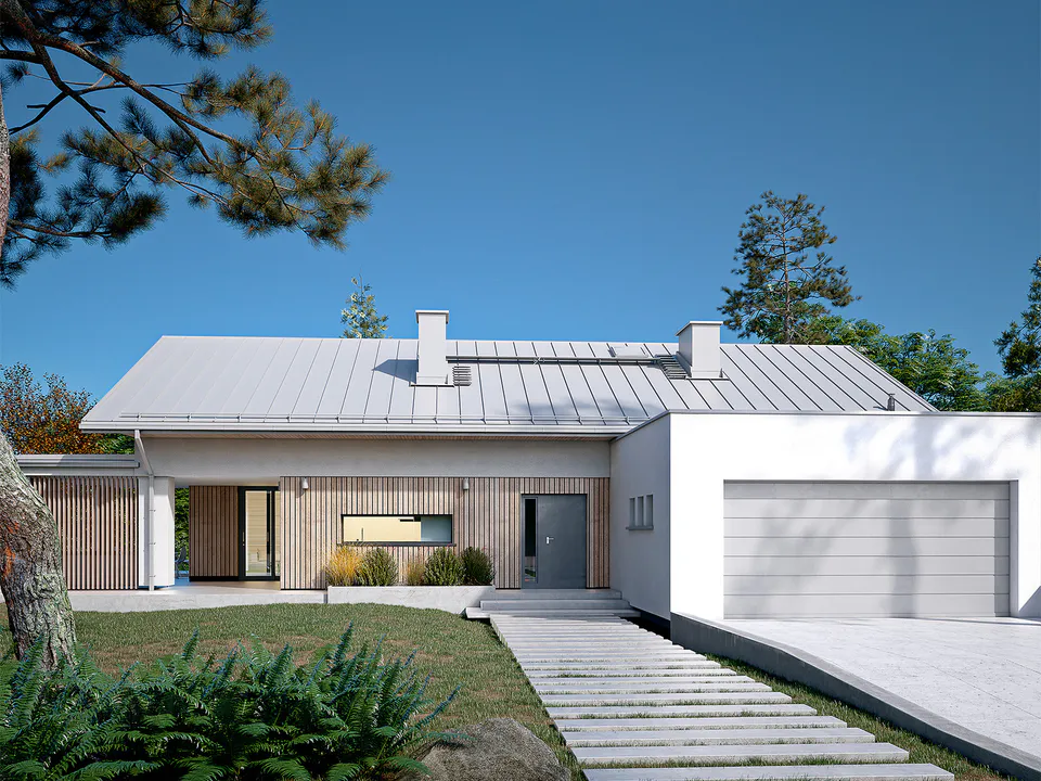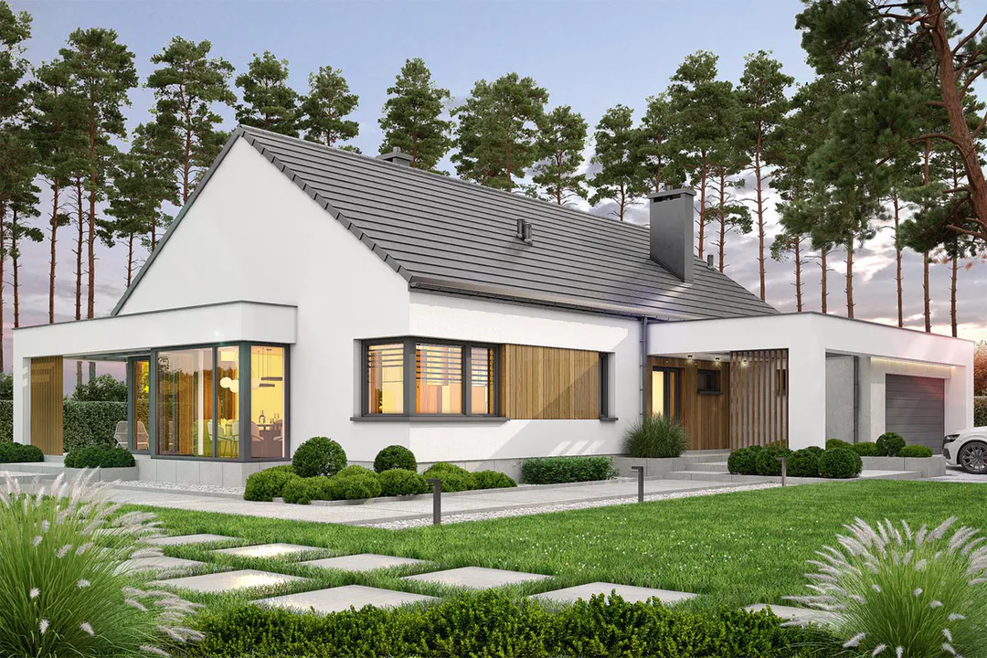 Проект решение для людей, ищущих функциональное, удобное и эстетичное место для жизни. Благодаря практичной планировке комнат, гибкости внутренней отделки и безопасности, обеспечиваемой гаражом на две машины, такой дом оправдывает ожидания жильцов.