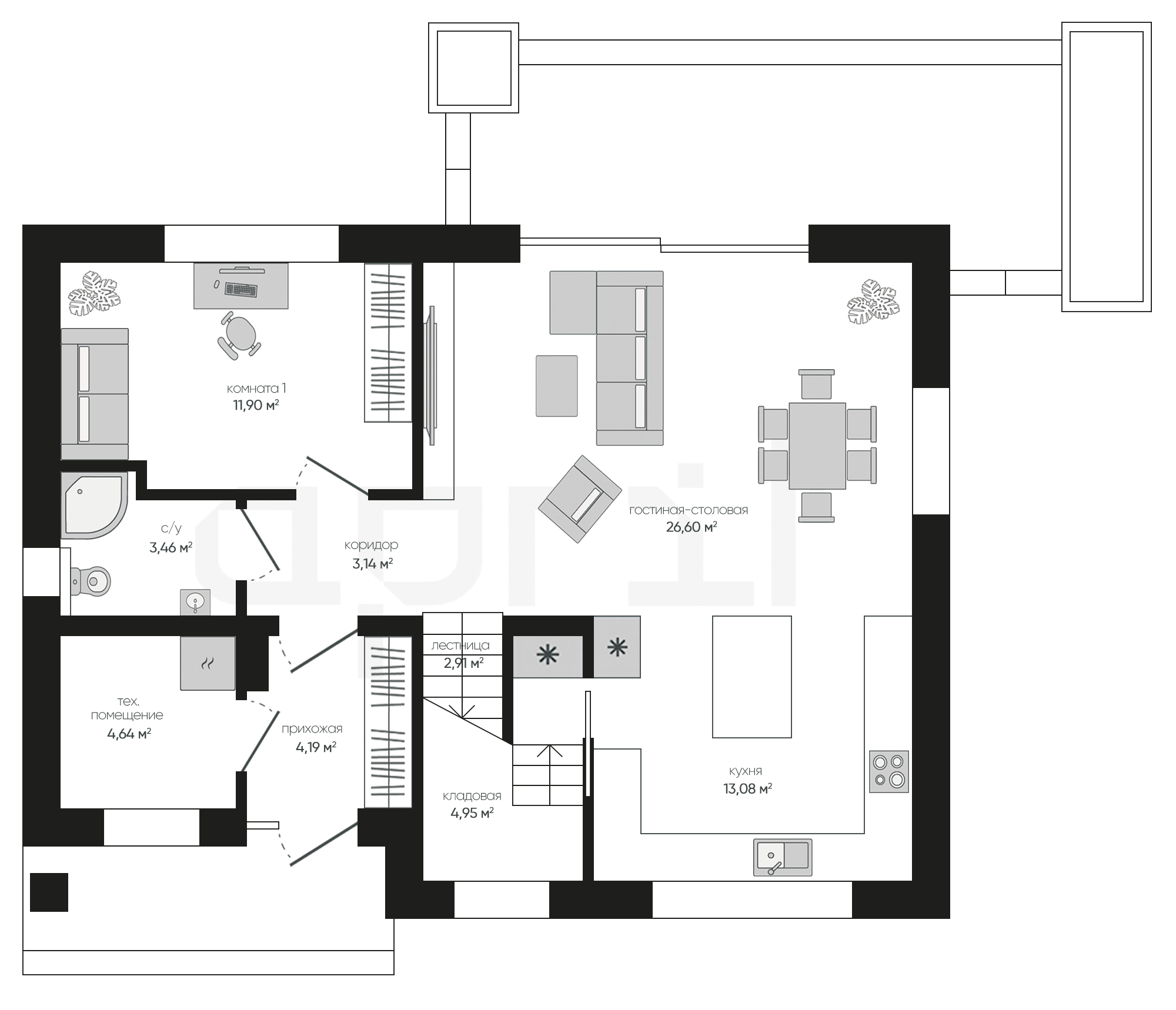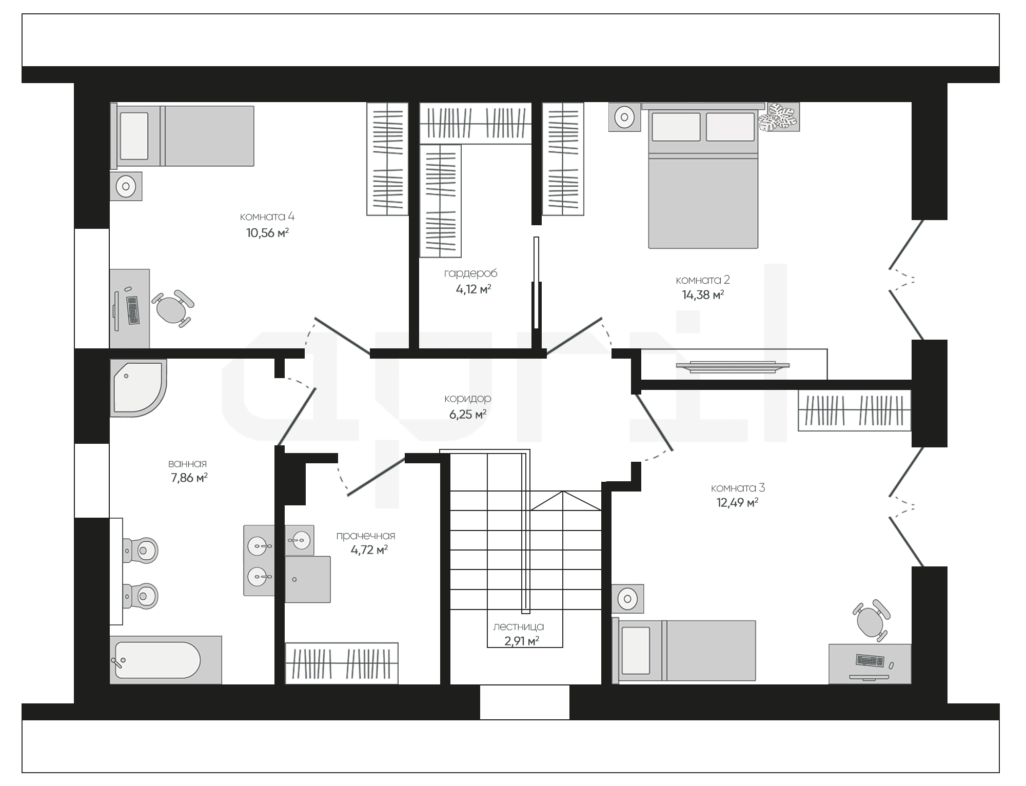 Дом с мансардой предлагает четкое разделение дневной и ночной зоны.