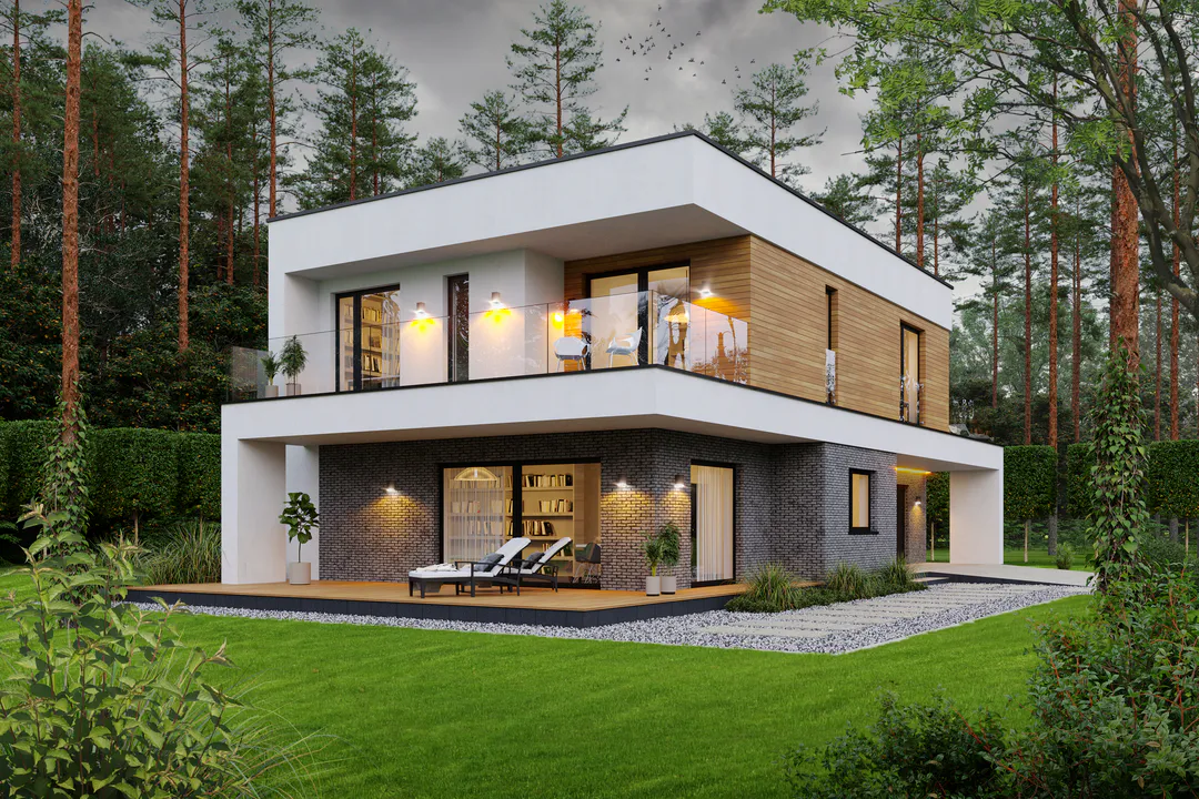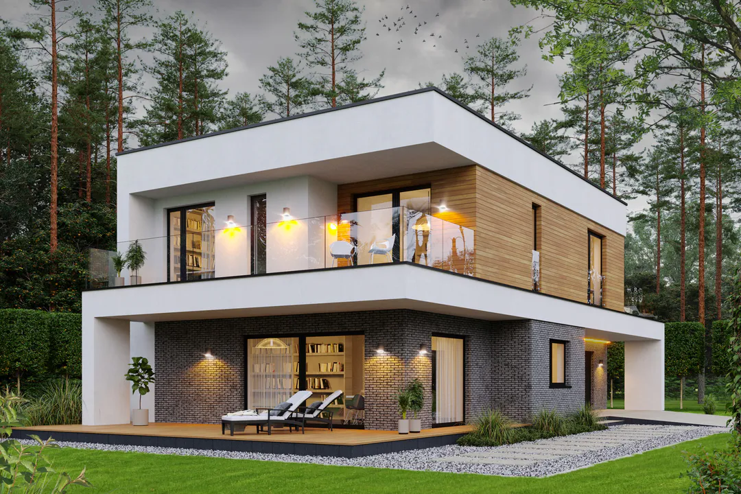 Проект современного, функционального двухэтажного дома с плоской крышей.