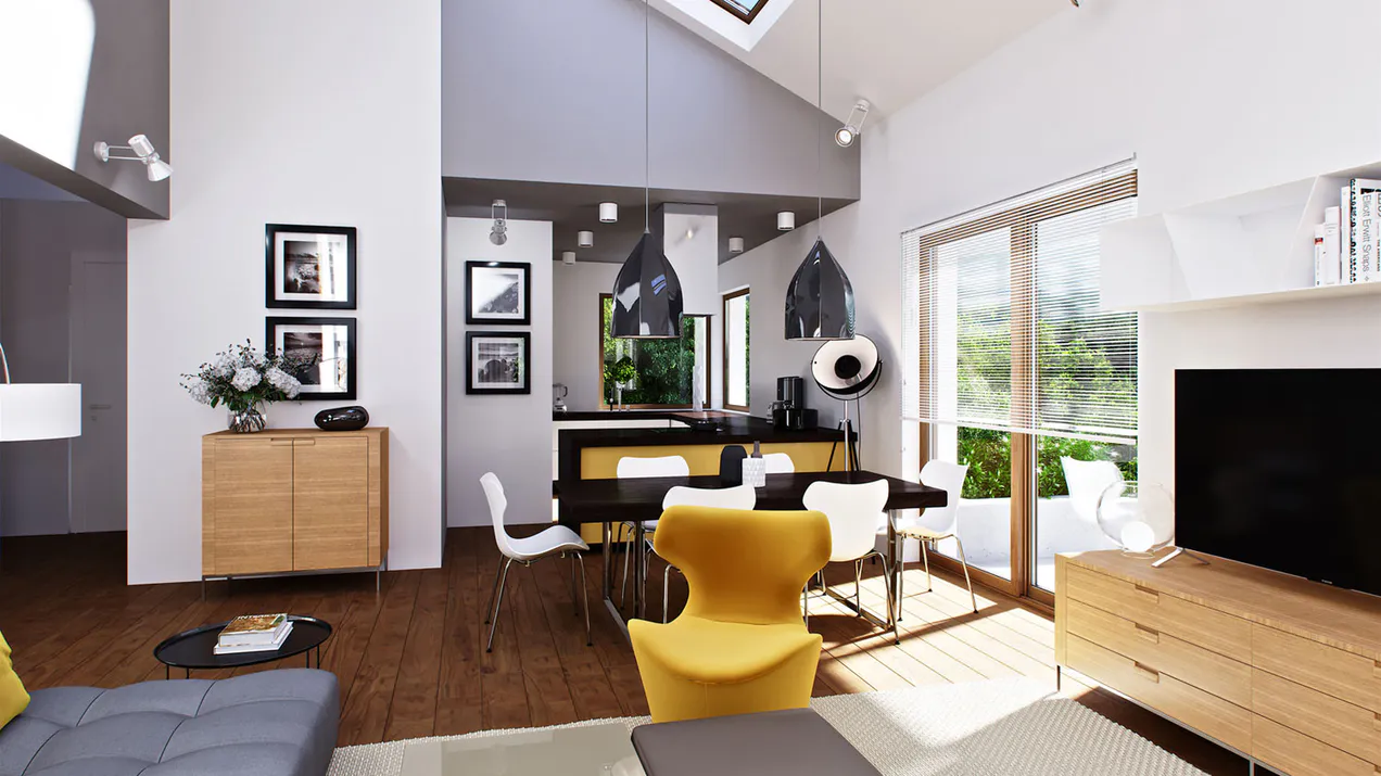 Проект впечатляет современным внешним видом и просторным интерьером. Прекрасно спланированное пространство и практичные решения повышают функциональность дома. Внешний вид дома понравится людям, ценящим как классический, так и современный стиль.