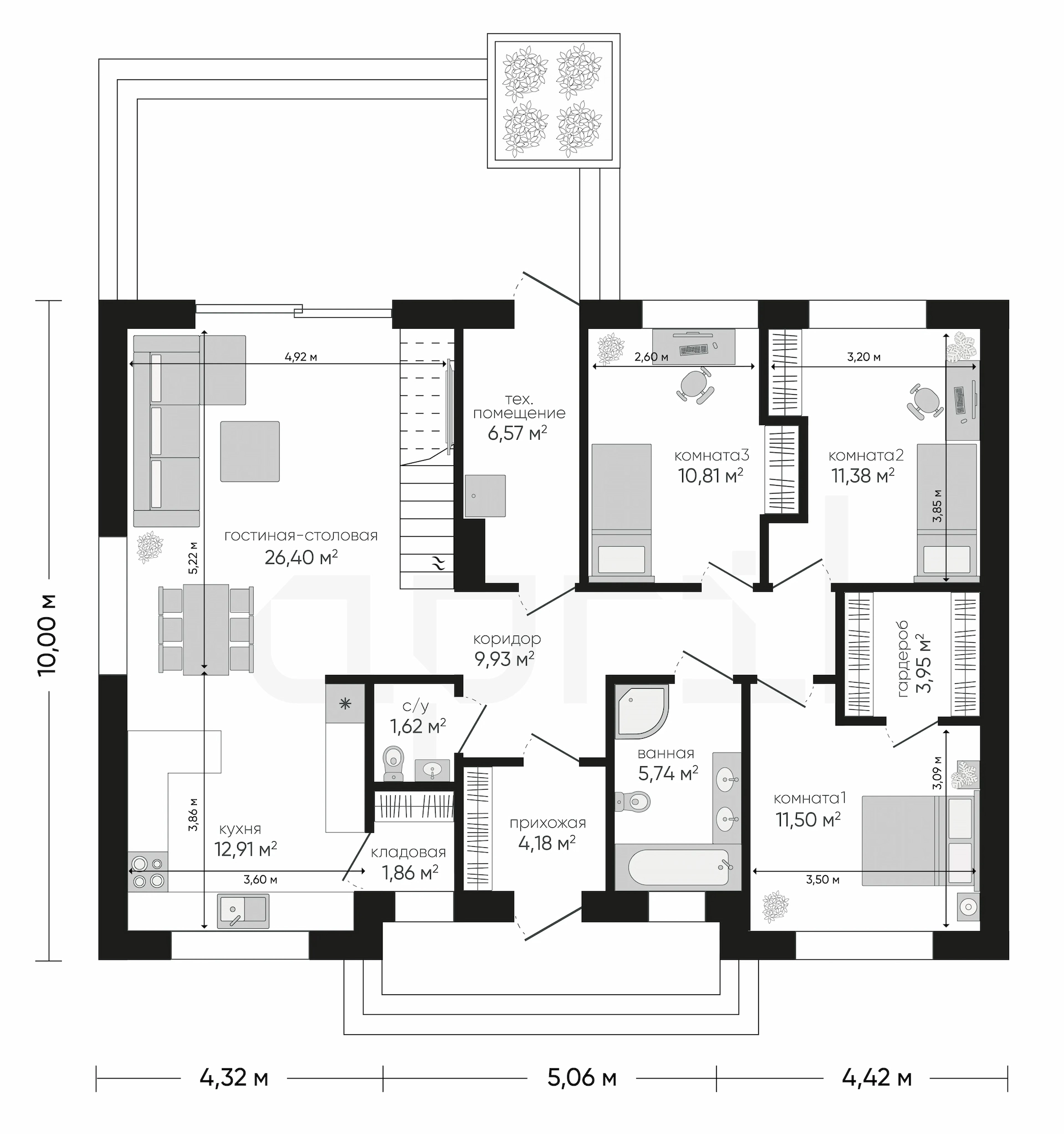 Проект рассчитан на семью из 3-4 человек.