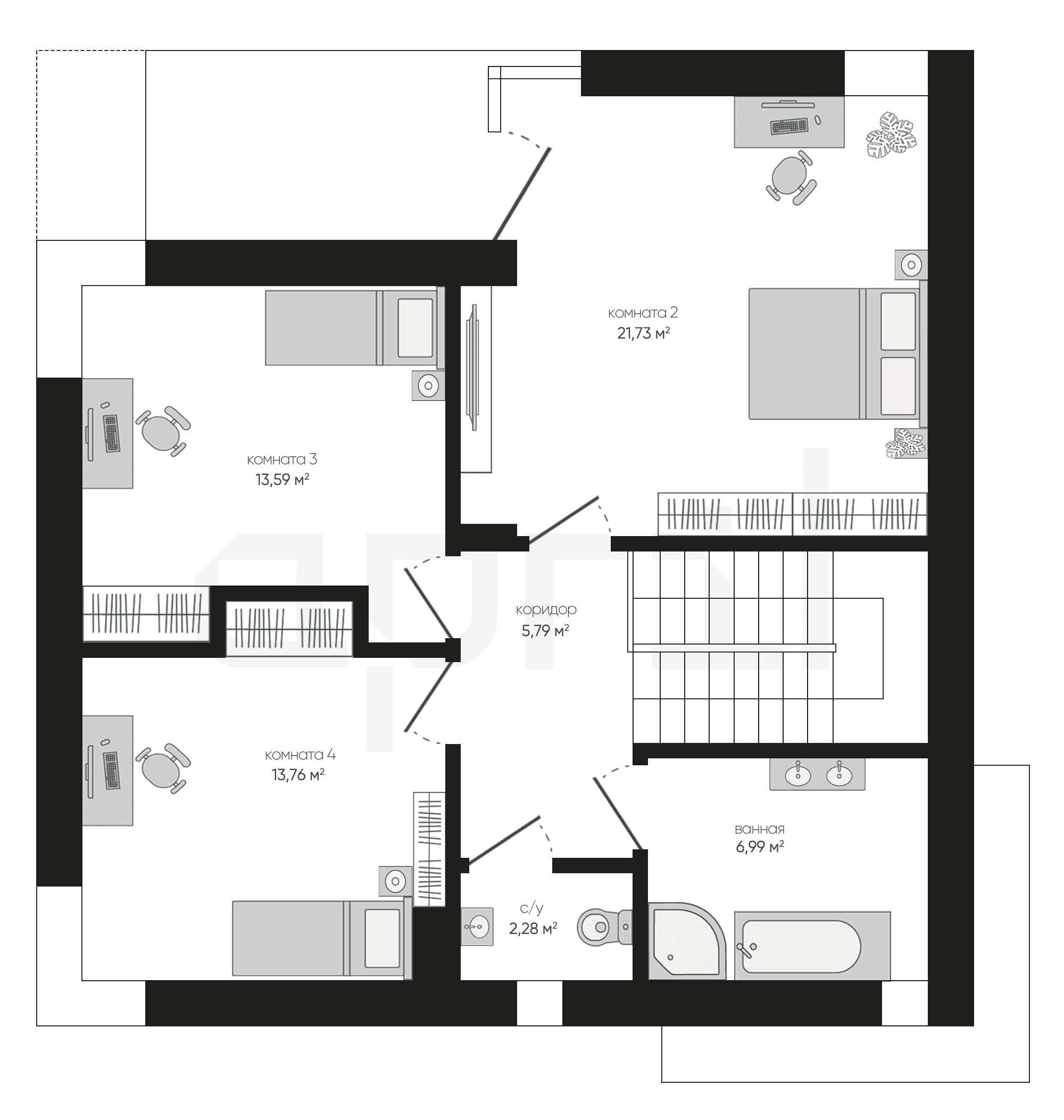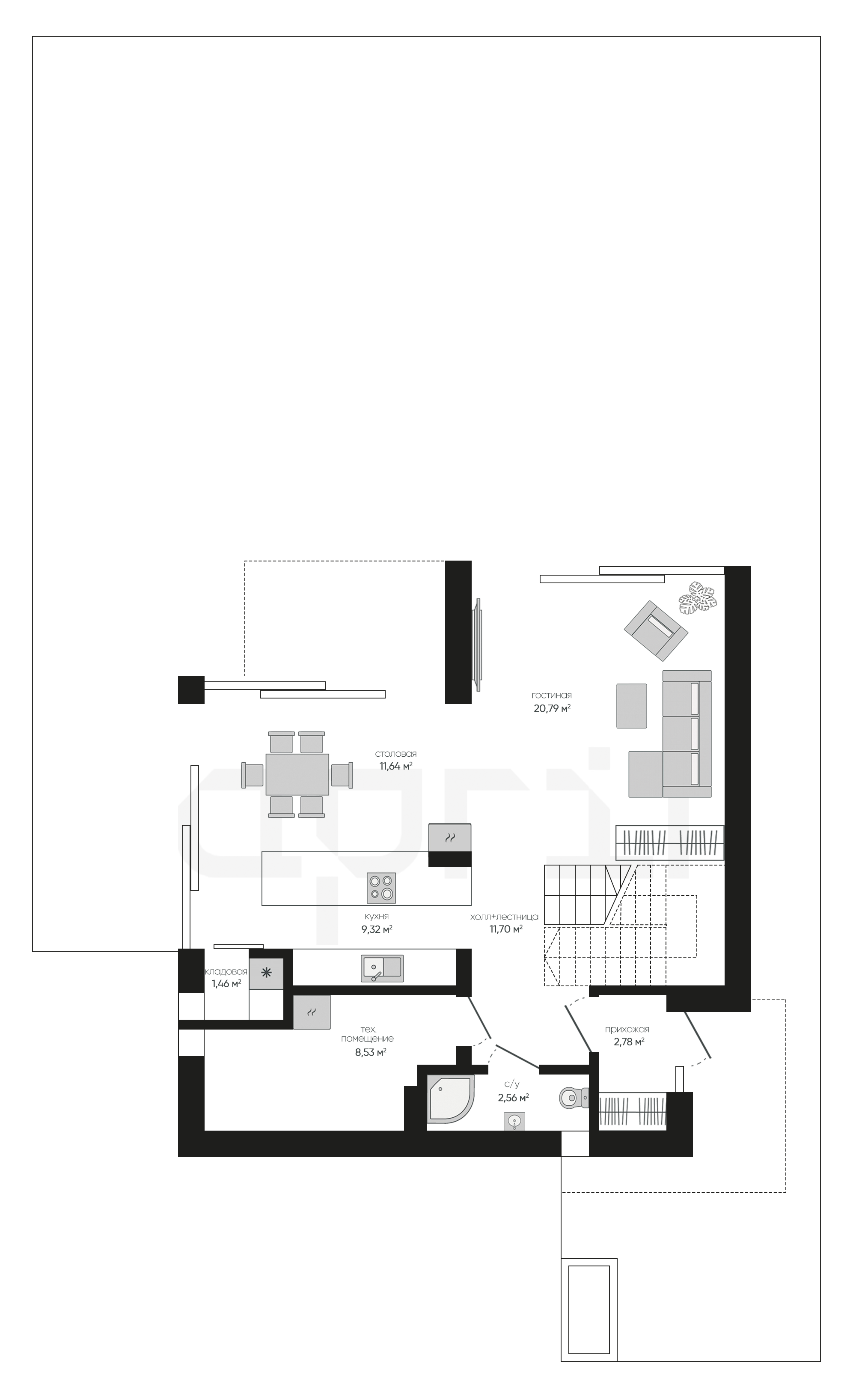 Дом спроектирован на двух уровнях, что позволяет функционально разделить помещения и обеспечить максимальный комфорт. Проект впечатляет как своим внешним видом, так и практичной планировкой пространства.