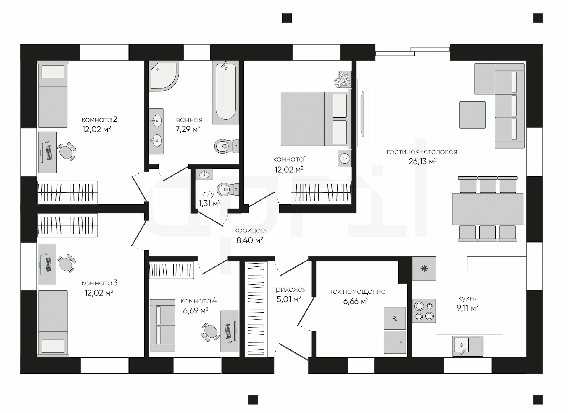 Проект рассчитан на семью из 4-5 человек.