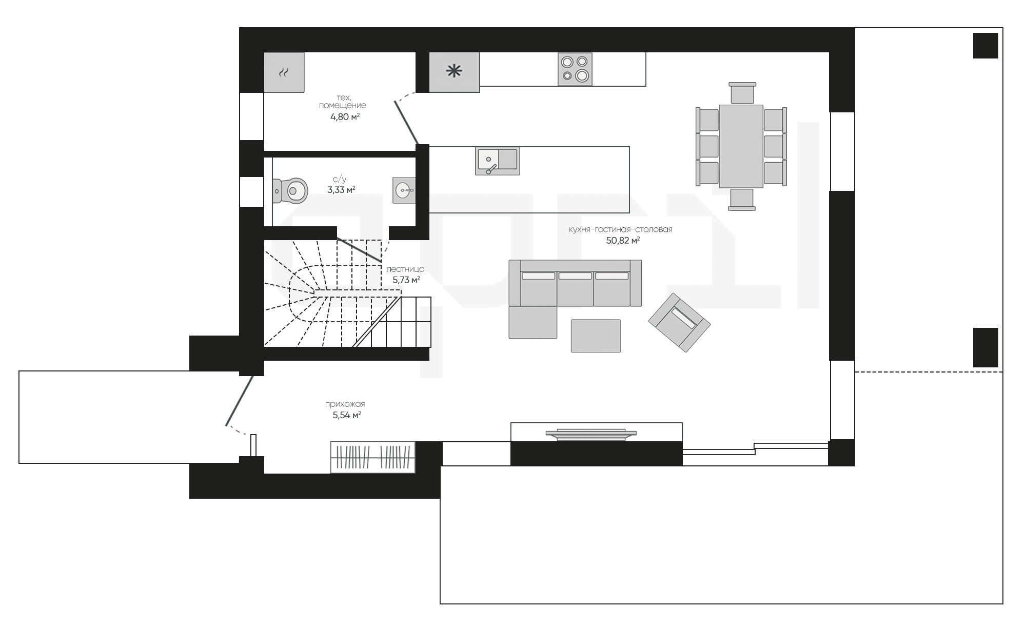 Благодаря продуманной архитектуре из двух наложенных друг на друга кубовидных форм, проект не только интригует своей формой, но и, прежде всего, обеспечивает комфортное полезное пространство при минимальной застроенной площади.