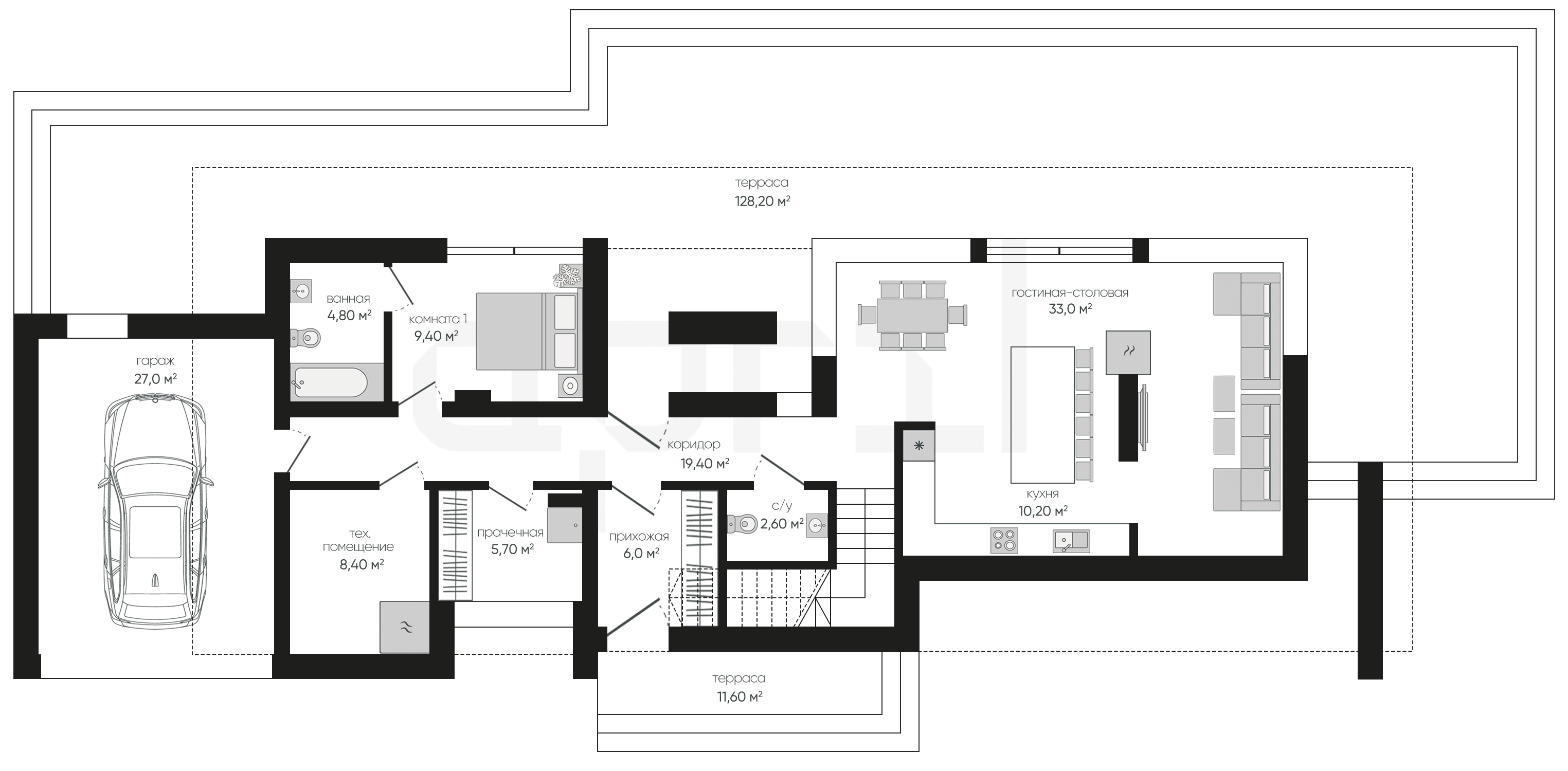 Дома 1 этаж с гаражом и террасой