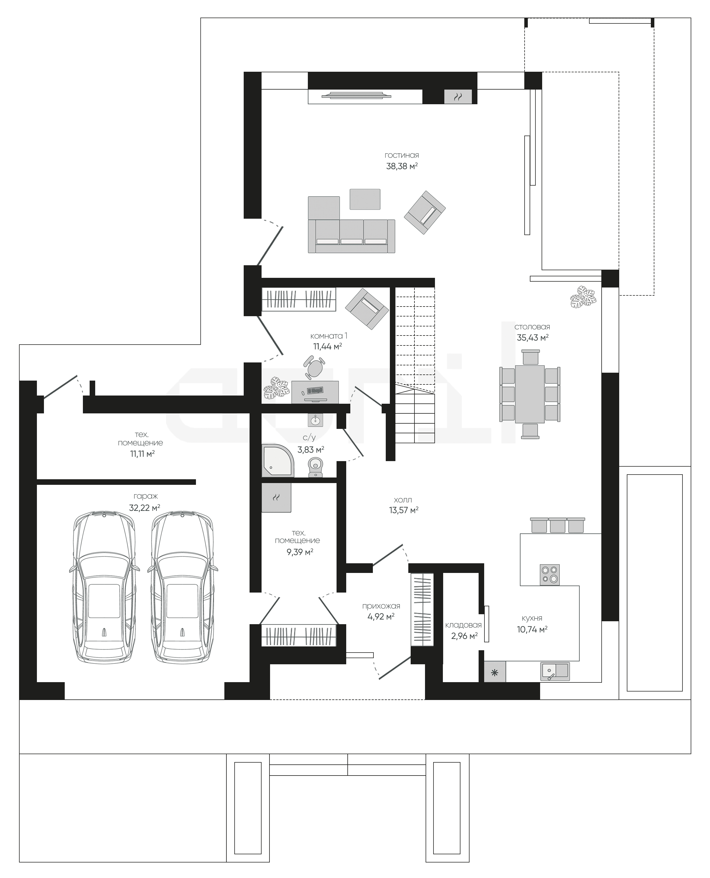 Дома 1 этаж с гаражом и террасой