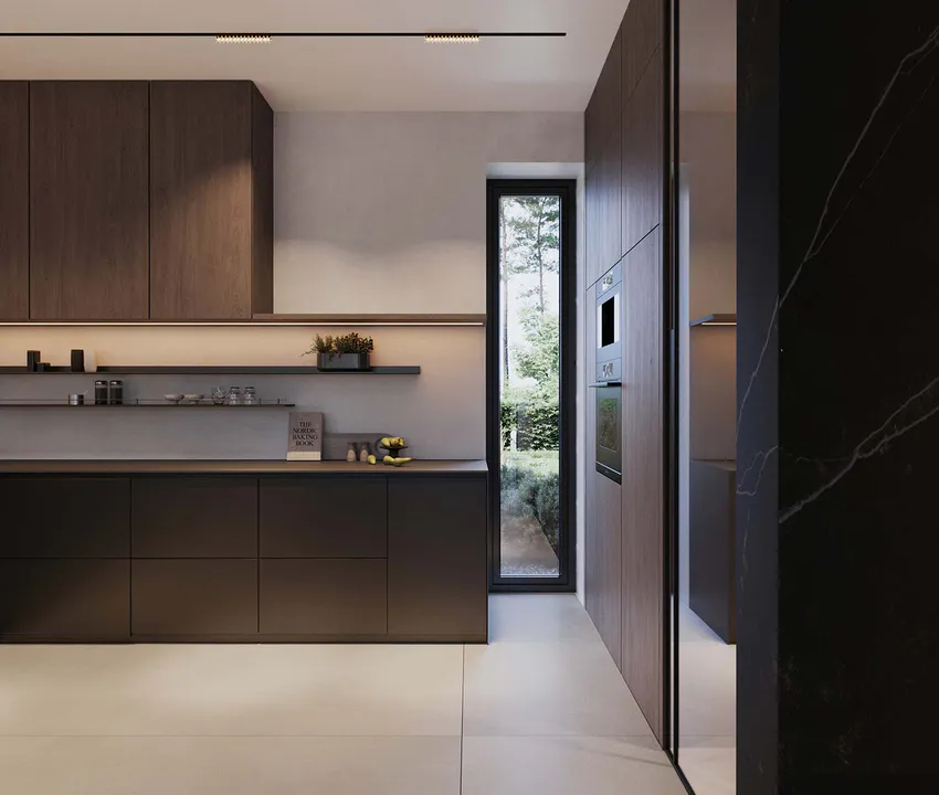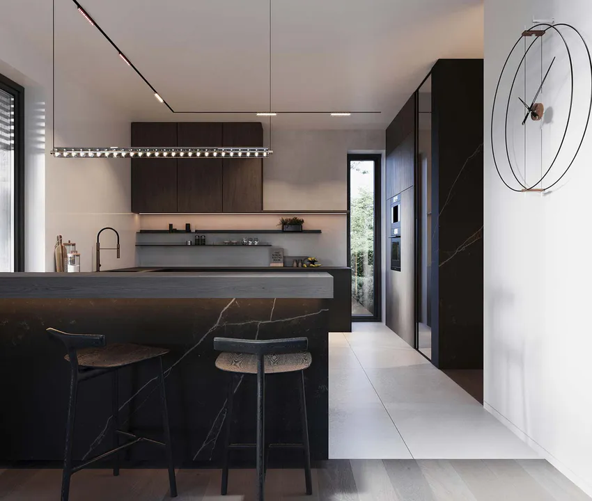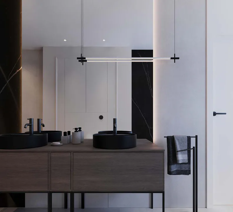 Дизайн привлекает внимание своей оригинальностью. Стиль Хайтек, в котором выполнено оформление, подчеркивает элегантную простоту. Чистые линии, минимальное количество декоративных элементов и нейтральные цвета создают уютную атмосферу без излишнего нагромождения.