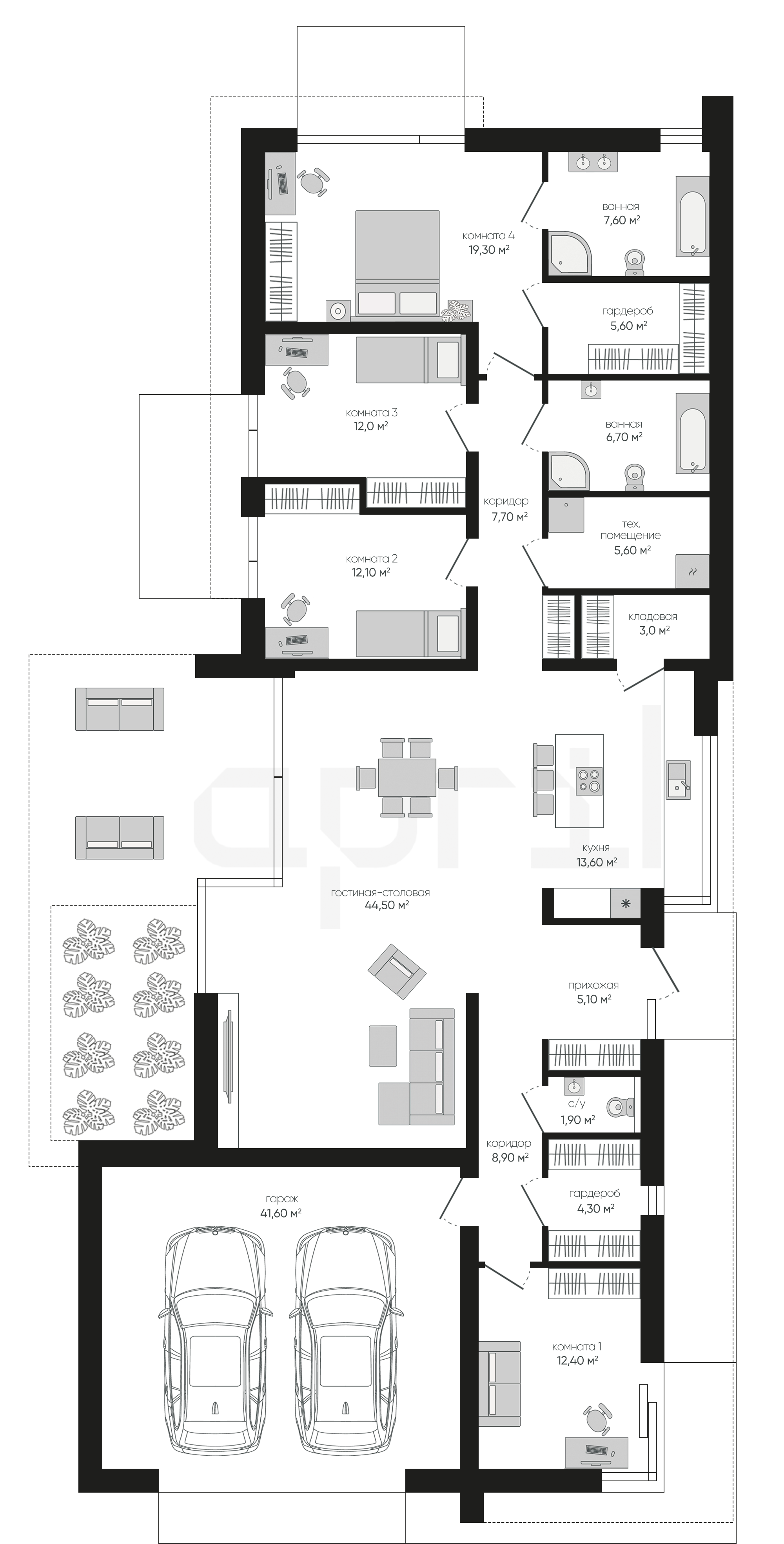 Дома 1 этаж с гаражом и террасой