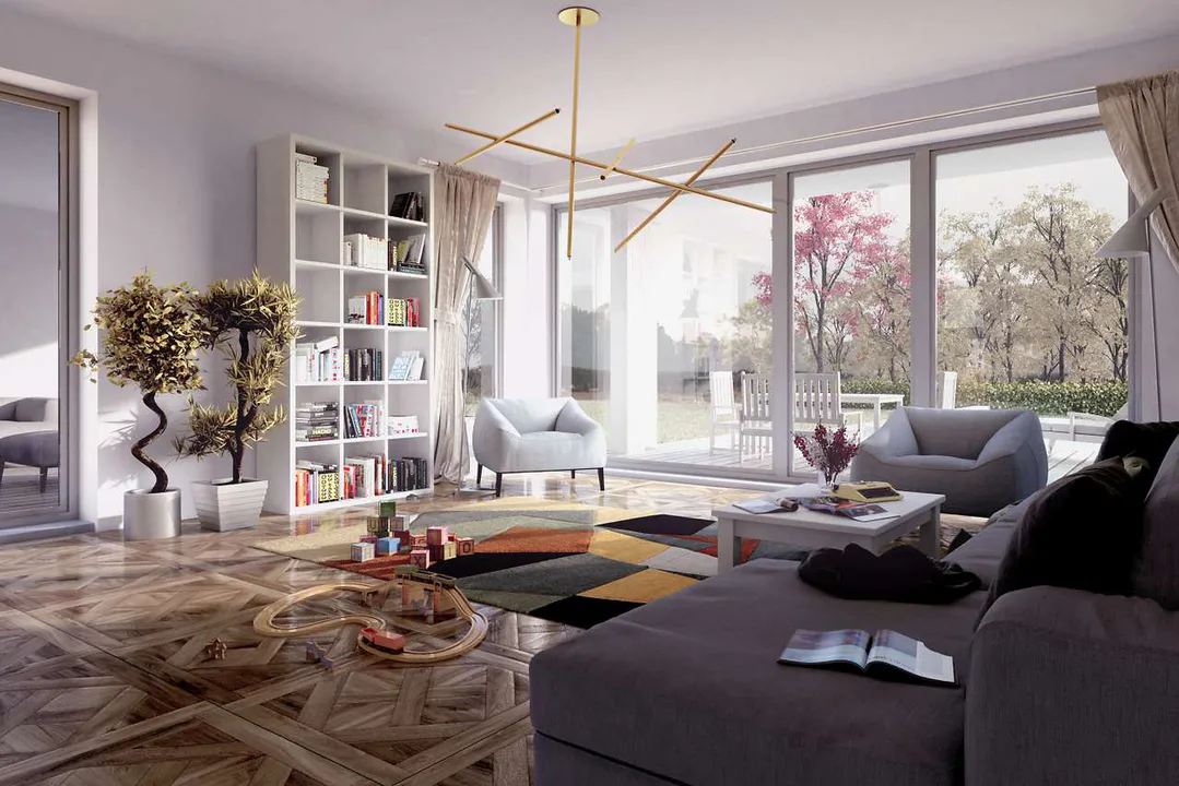 В дизайне преобладают нейтральные тона, что придаёт зданию элегантный и спокойный вид.