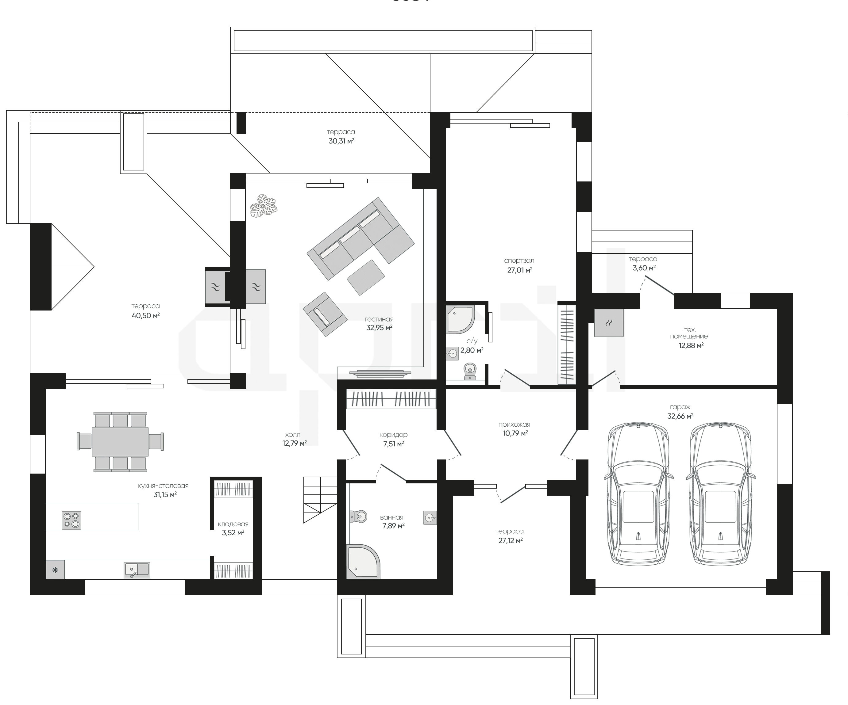 Дома 1 этаж с гаражом и террасой