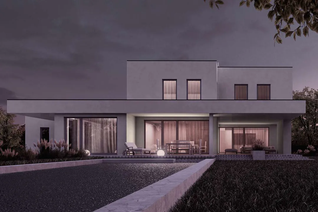 Дом имеет минималистичный дизайн, простую геометрическую форму и чистые прямые линии.