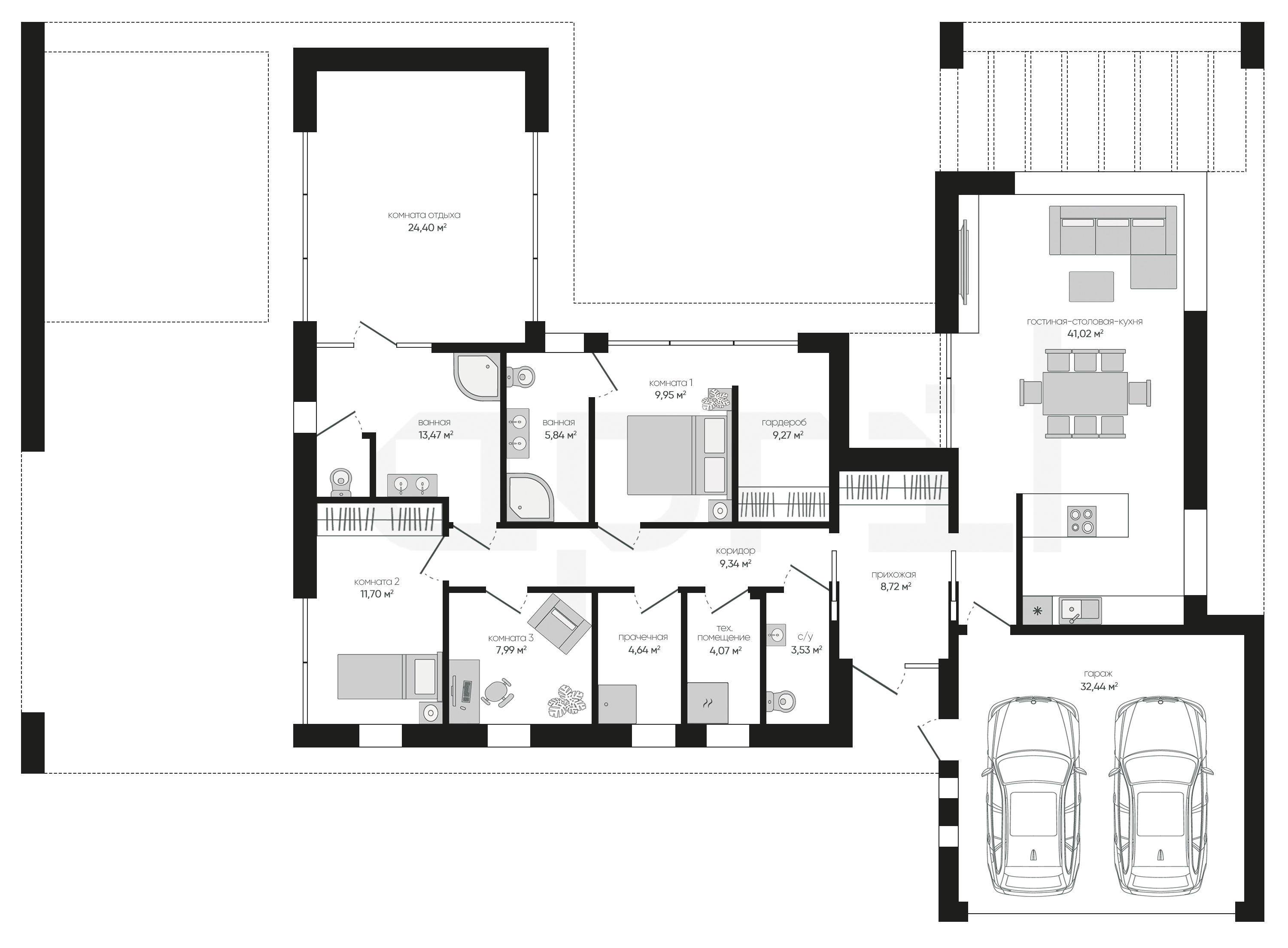 Дома 1 этаж с гаражом и террасой