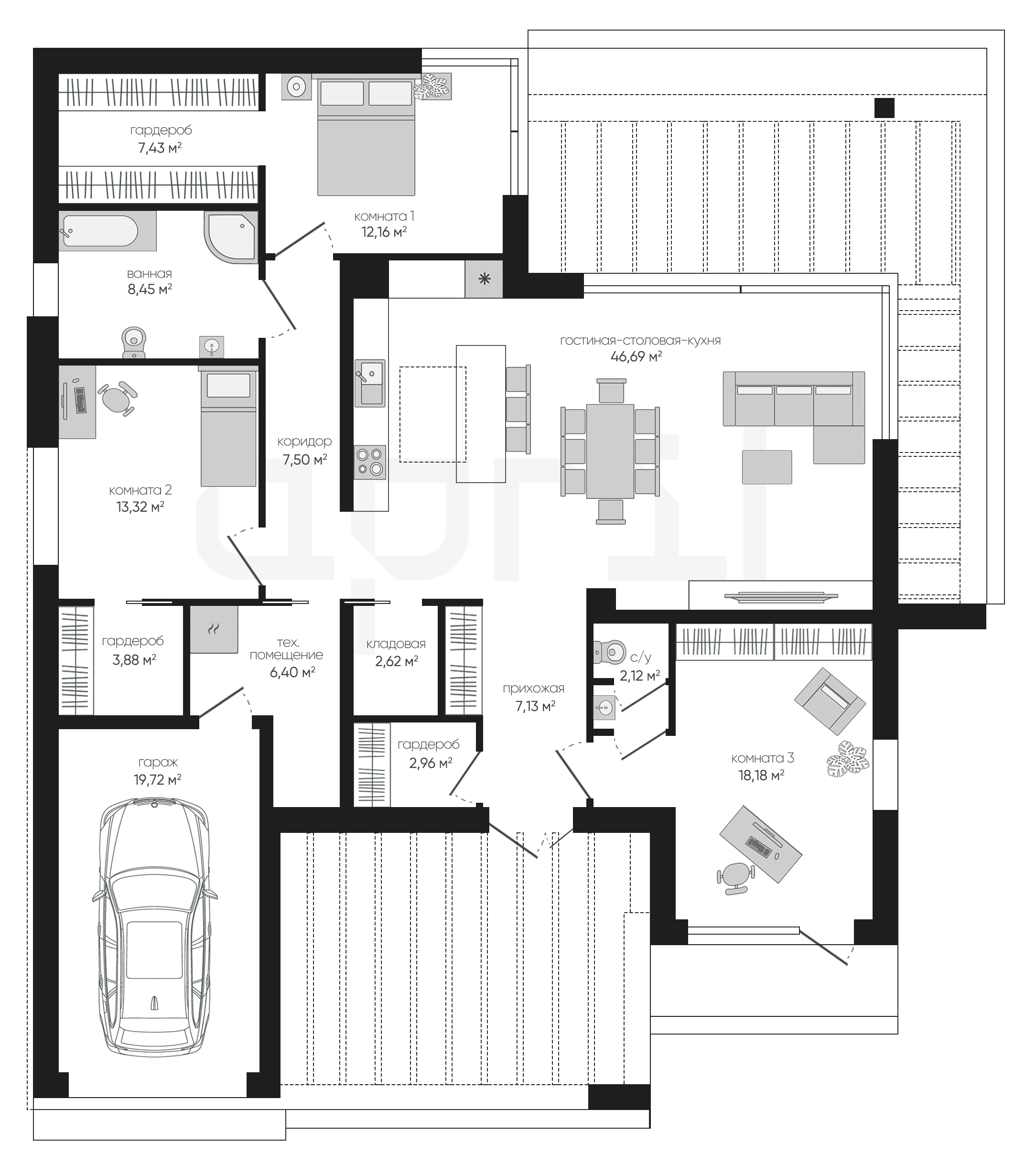 Дома 1 этаж с гаражом и террасой