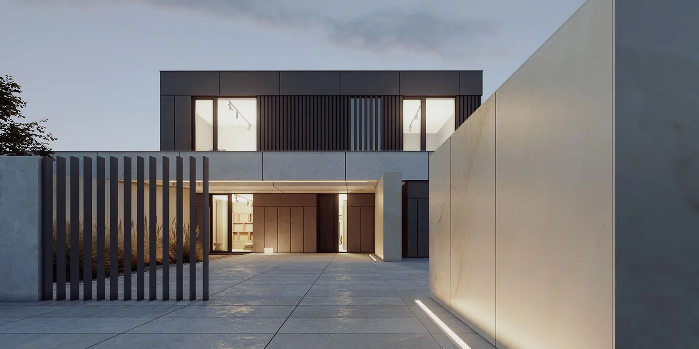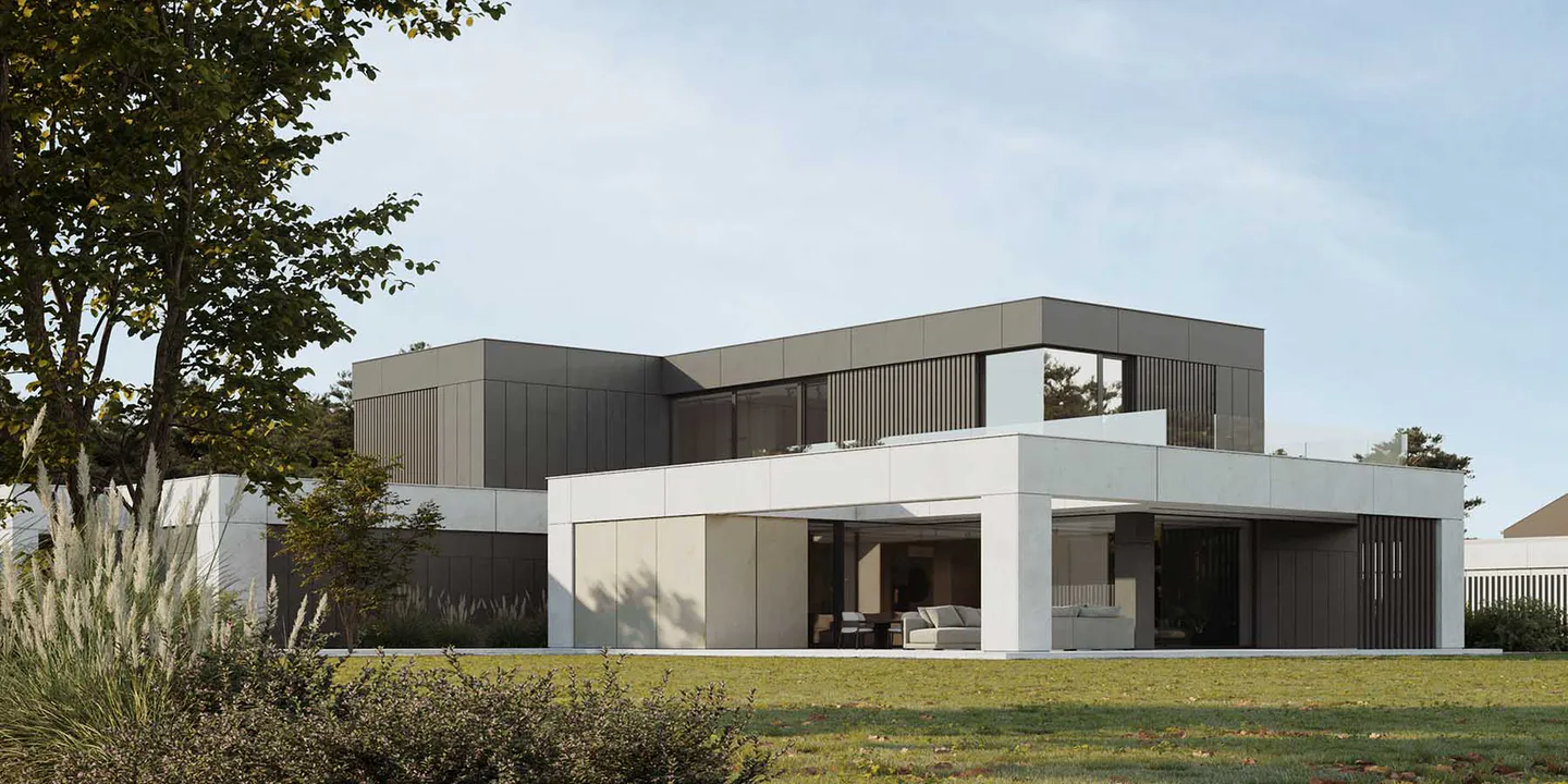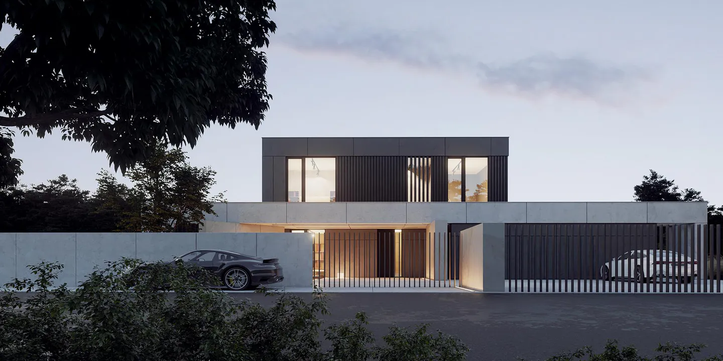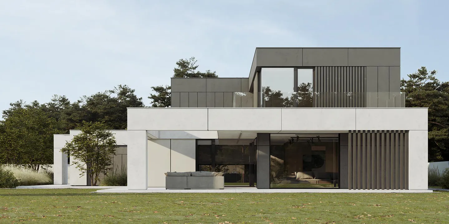 Проект представляет собой двухэтажный дом минималистичного дизайна, где функциональность и эстетика сливаются воедино, создавая гармоничное жилое пространство.